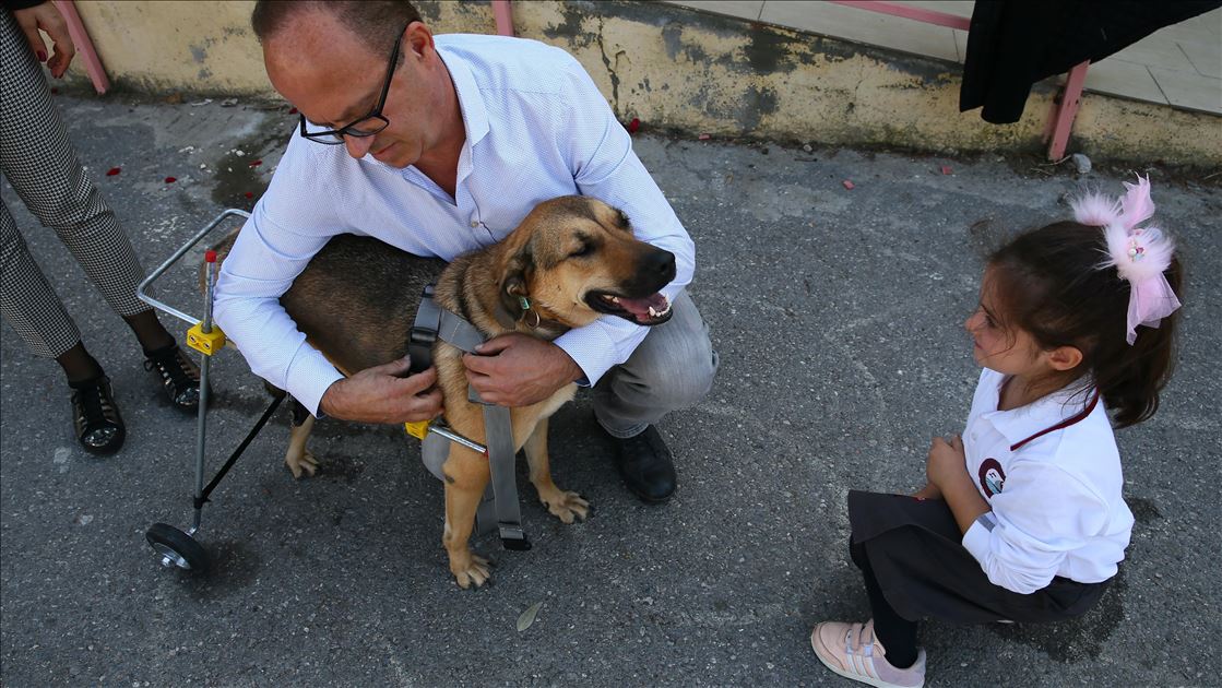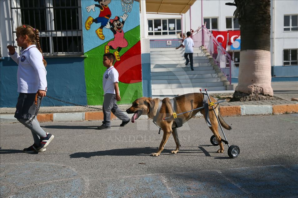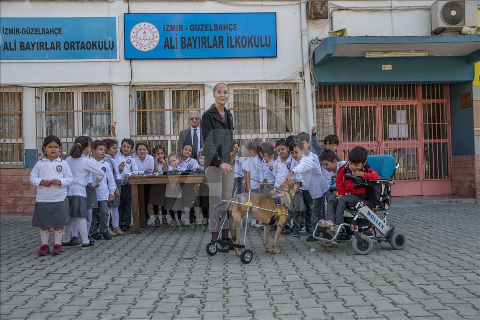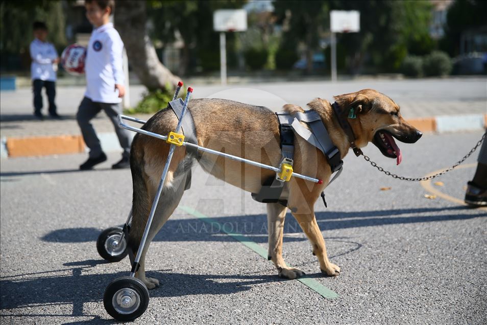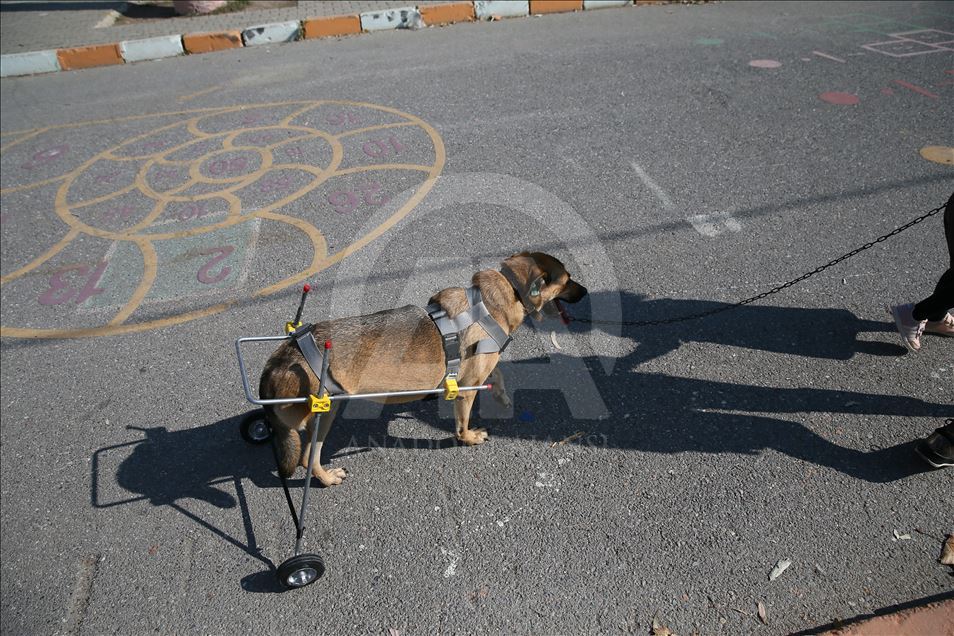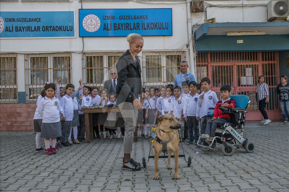 İzmir'de, aracın çarpması sonucu arka bacağı kopan "Fıstık" adlı köpek, öğretmen Mehmet Tanrıverdi'nin başlattığı çalışmayla protez yürütecine kavuştu. Fıstık, Güzelbahçe Ali Bayırlar İlkokulu öğrencilerinin de ilgi odağı oldu. ( Halil Fidan - Anadolu Ajansı )Halil Fidan