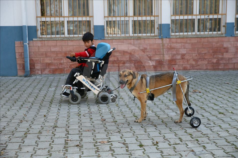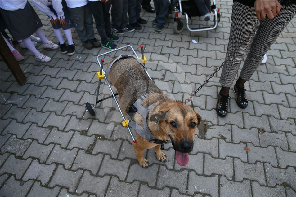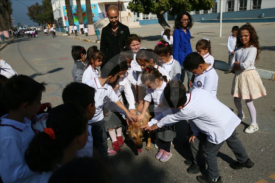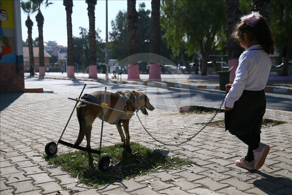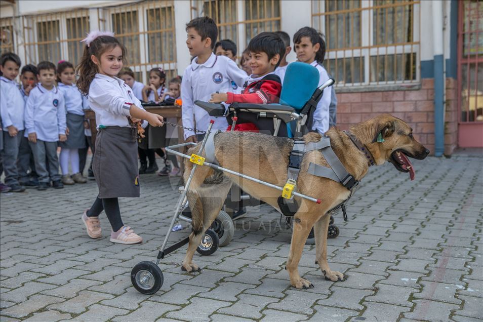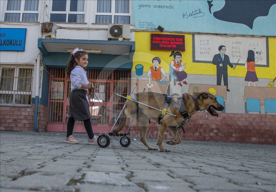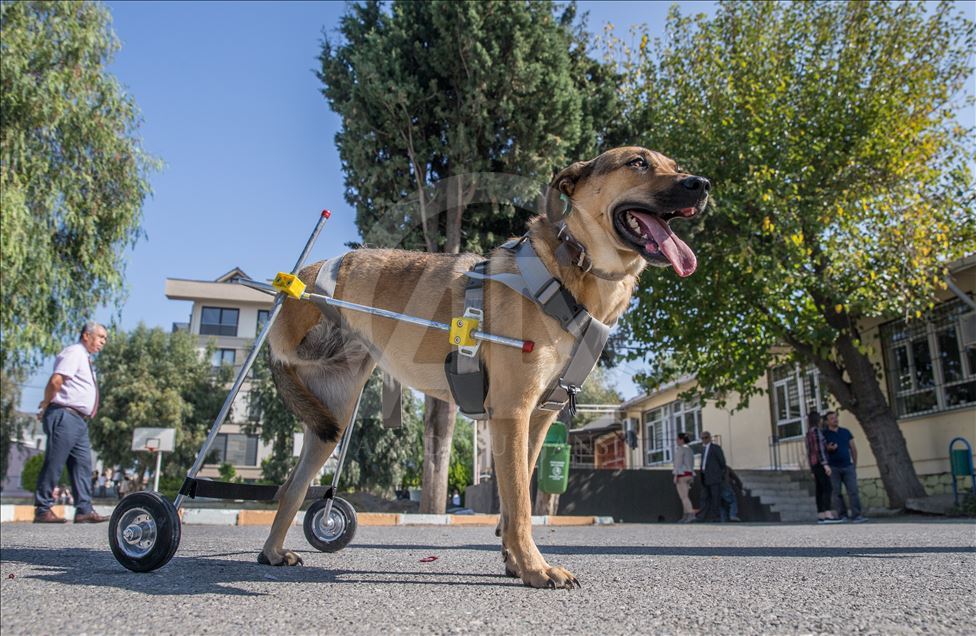 İzmir'de, aracın çarpması sonucu arka bacağı kopan "Fıstık" adlı köpek, öğretmen Mehmet Tanrıverdi'nin başlattığı çalışmayla protez yürütecine kavuştu. Fıstık, Güzelbahçe Ali Bayırlar İlkokulu öğrencilerinin de ilgi odağı oldu. ( Halil Fidan - Anadolu Ajansı )Halil Fidan