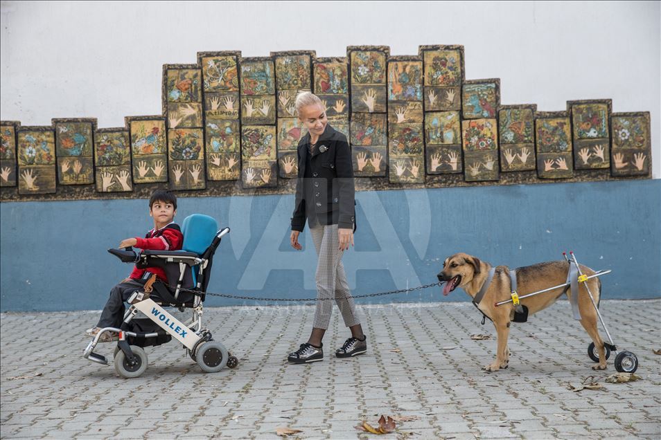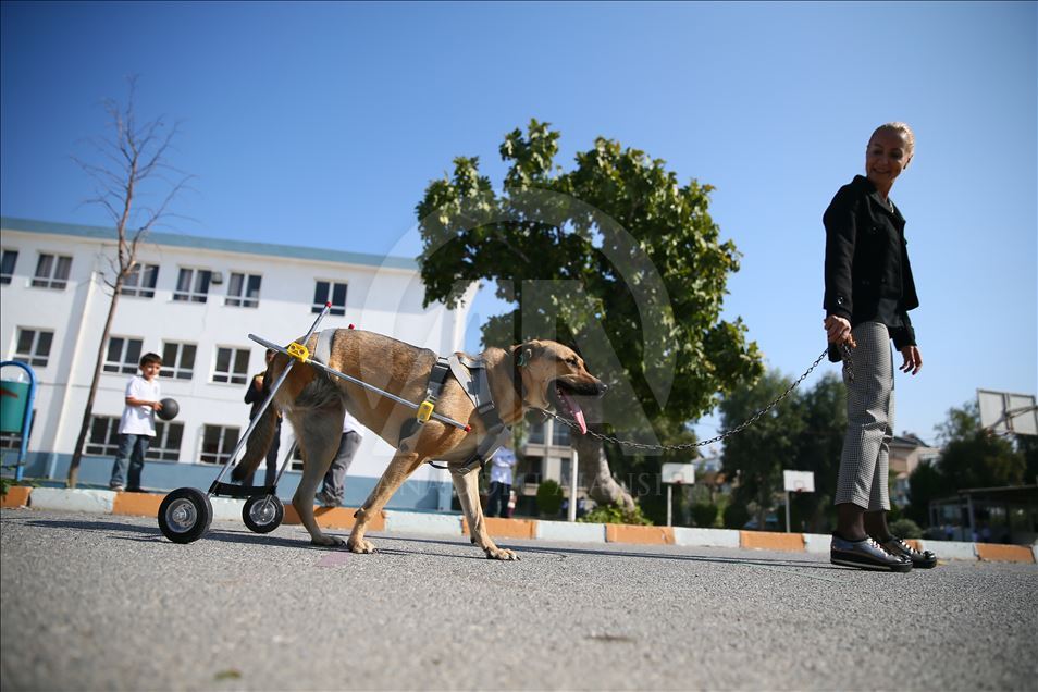 İzmir'de, aracın çarpması sonucu arka bacağı kopan "Fıstık" adlı köpek, öğretmen Mehmet Tanrıverdi'nin başlattığı çalışmayla protez yürütecine kavuştu. Güzelbahçe İlçe Milli Eğitim Müdürü Öznur Çetin de projede Tanrıverdi'ye destek verdi. ( Halil Fidan - Anadolu Ajansı )Halil Fidan