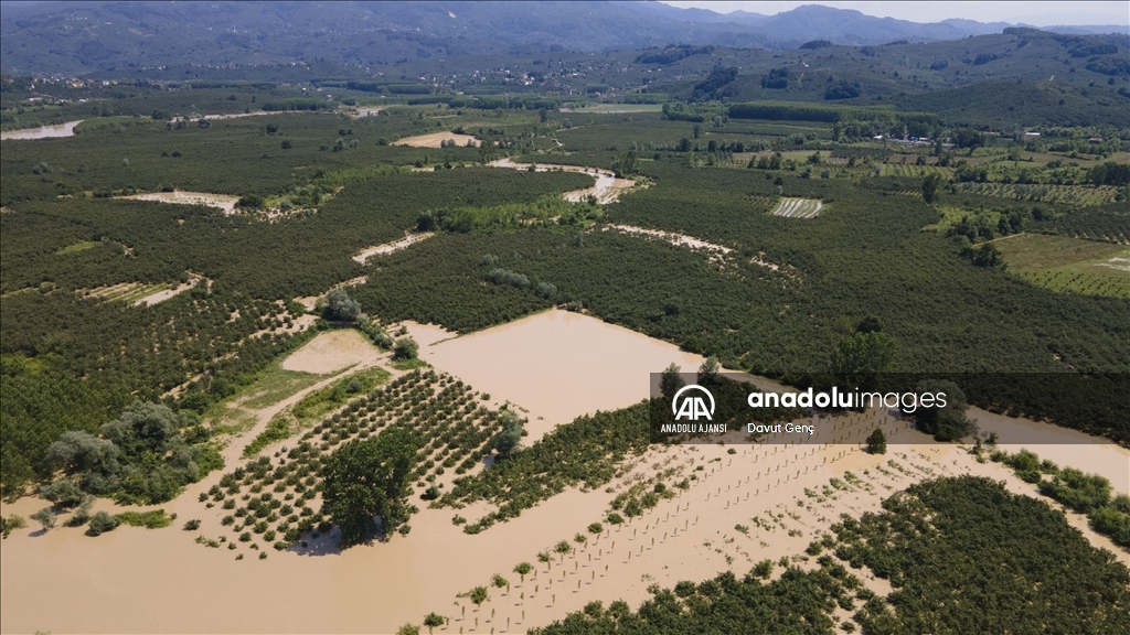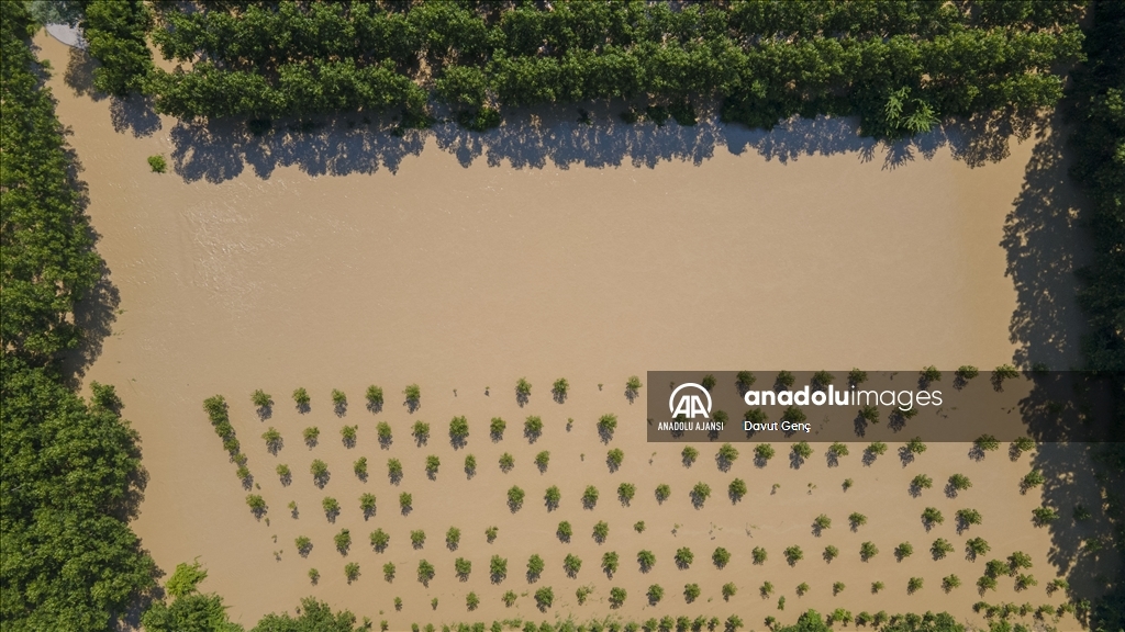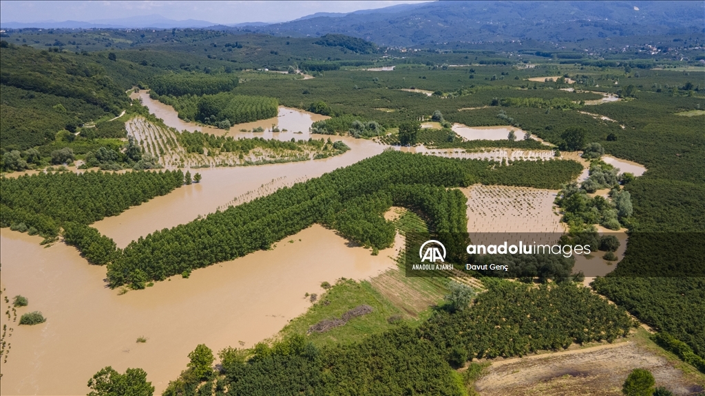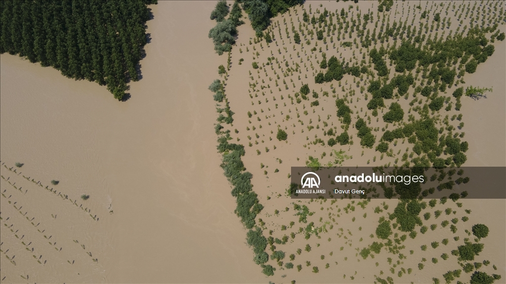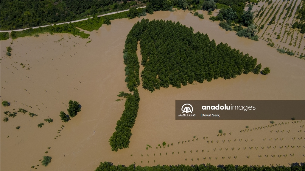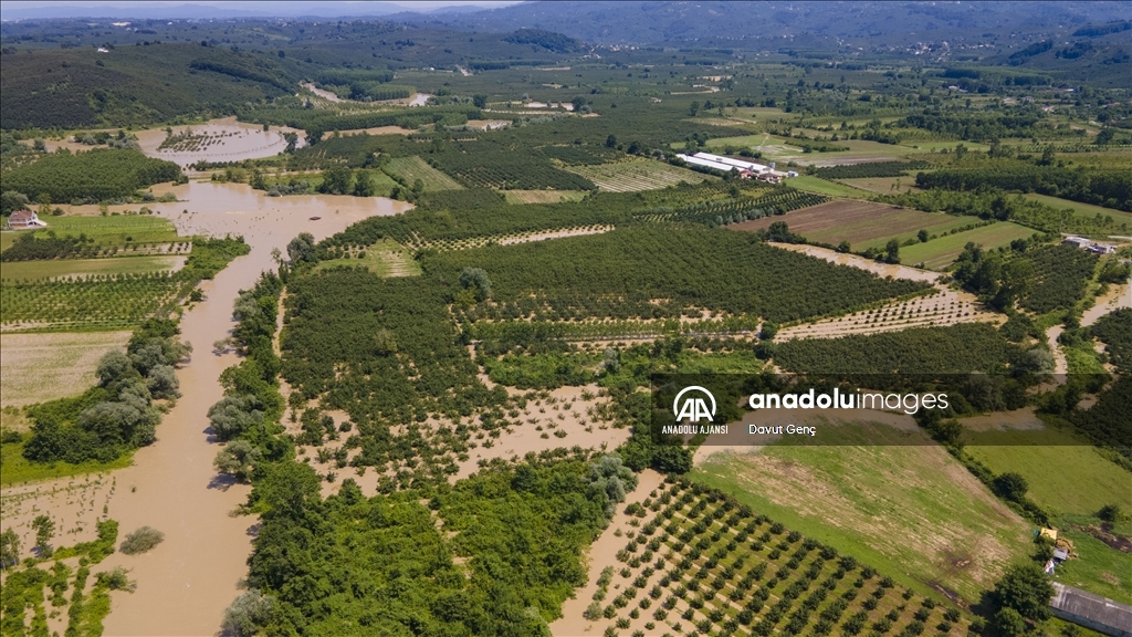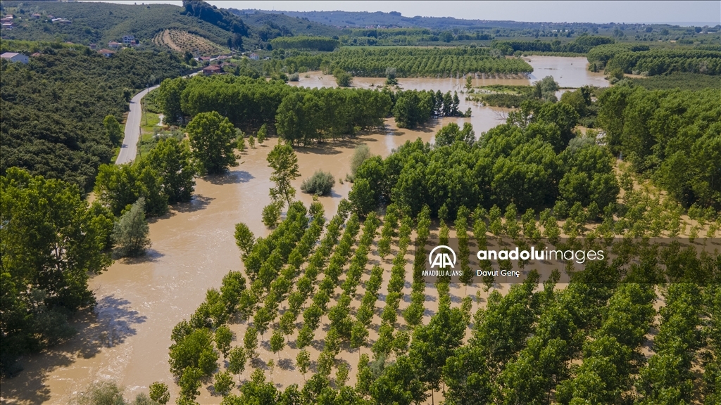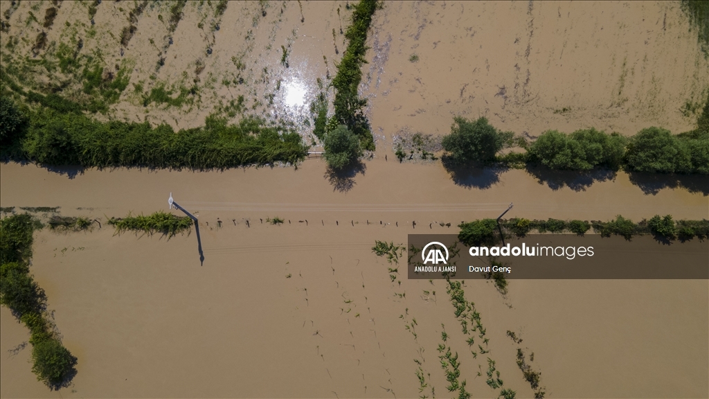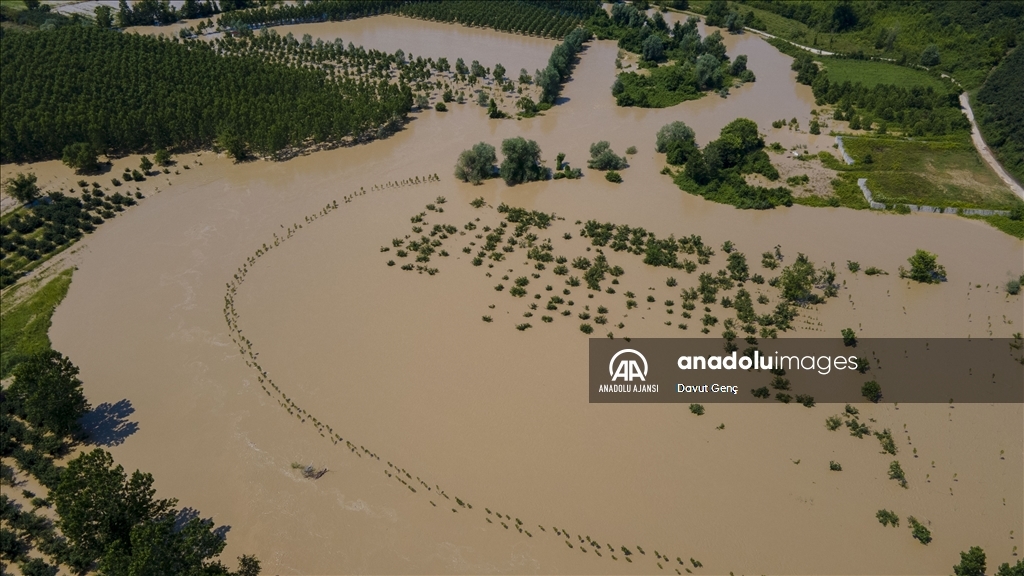 Sakarya ve Düzce illeri arasından geçen Melen Nehri'nde bölgedeki sağanağın ardından yaşanan taşkınlar tarım arazilerine zarar verdi.