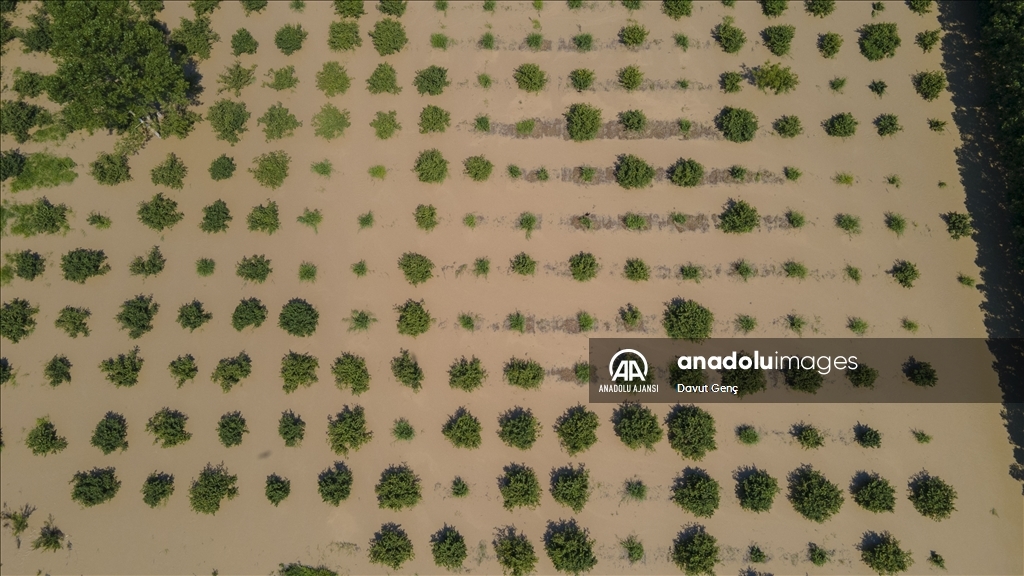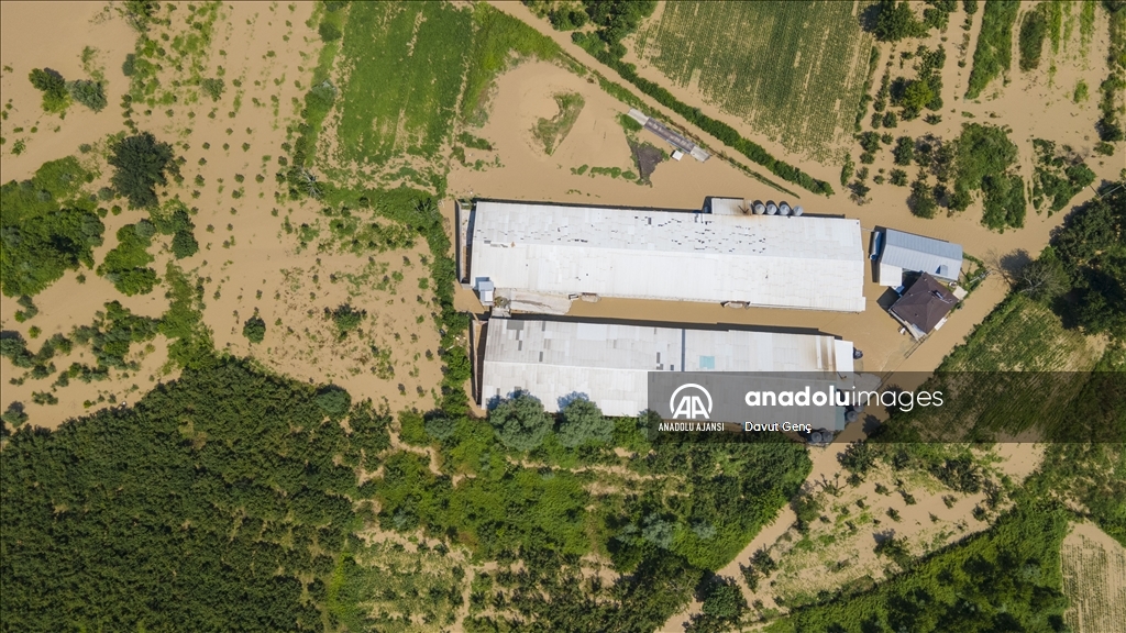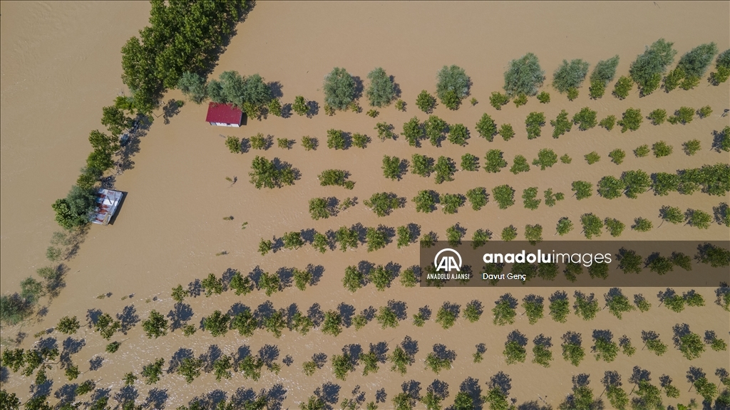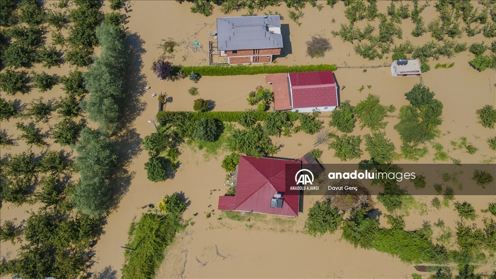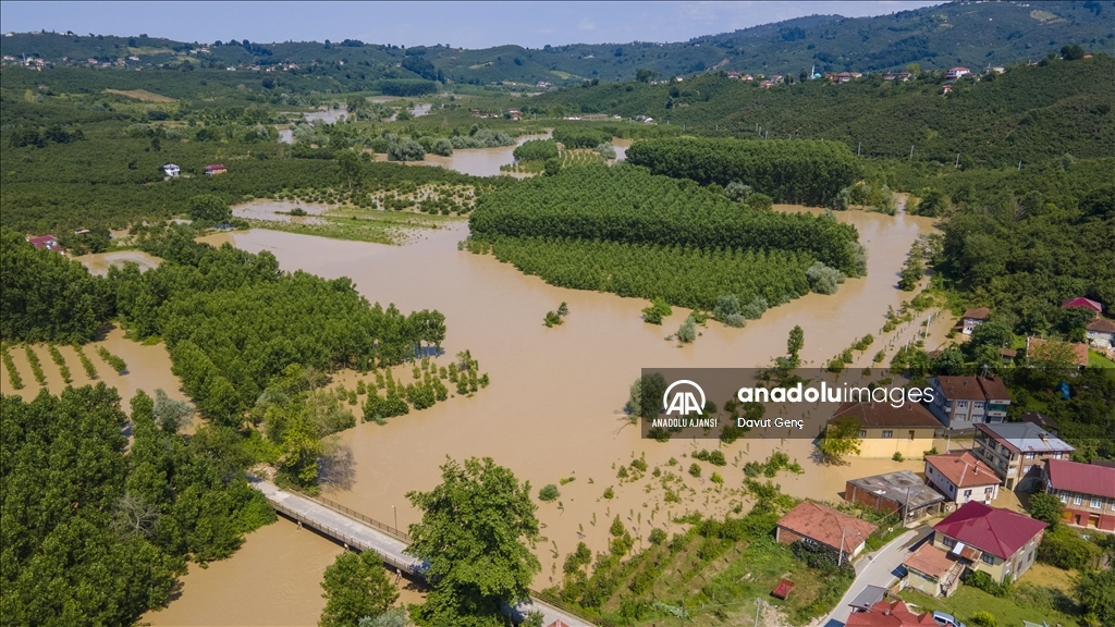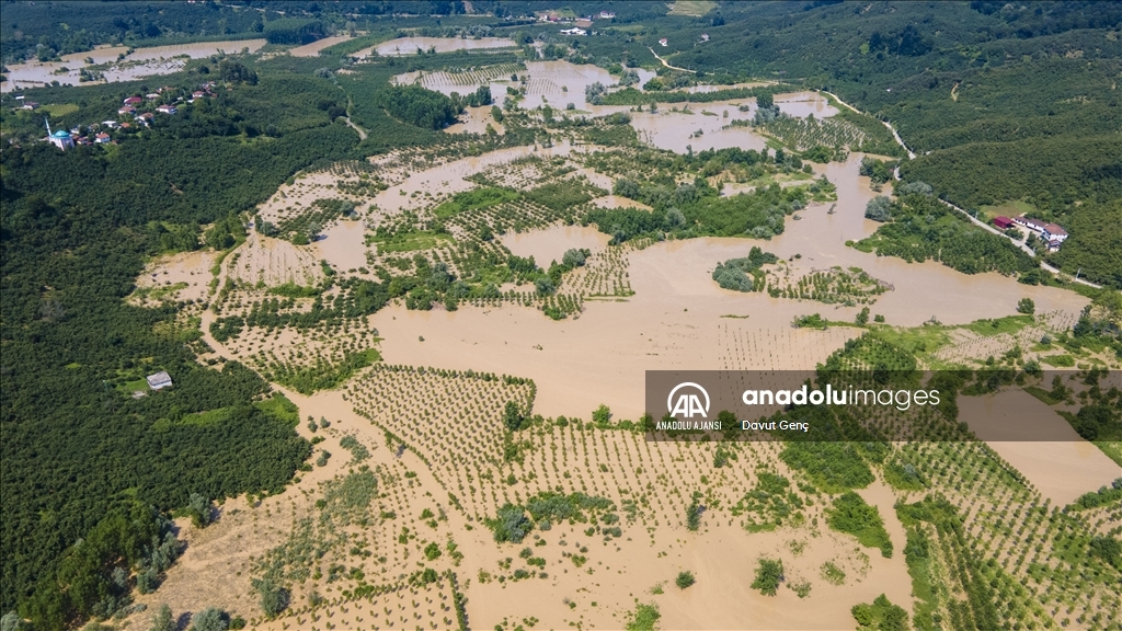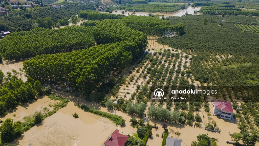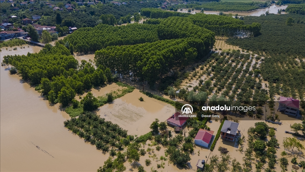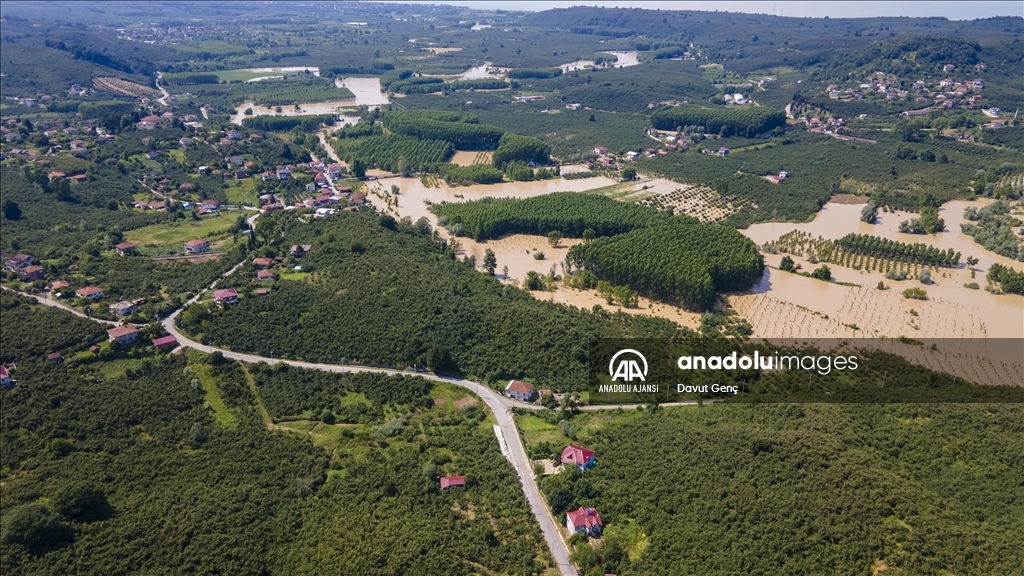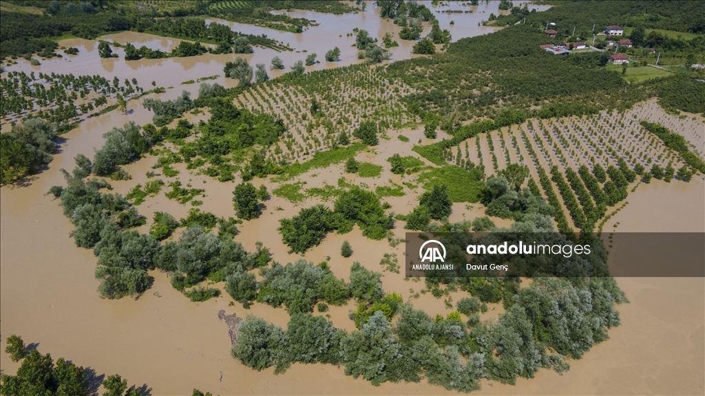Sakarya ve Düzce illeri arasından geçen Melen Nehri'nde bölgedeki sağanağın ardından yaşanan taşkınlar tarım arazilerine zarar verdi.