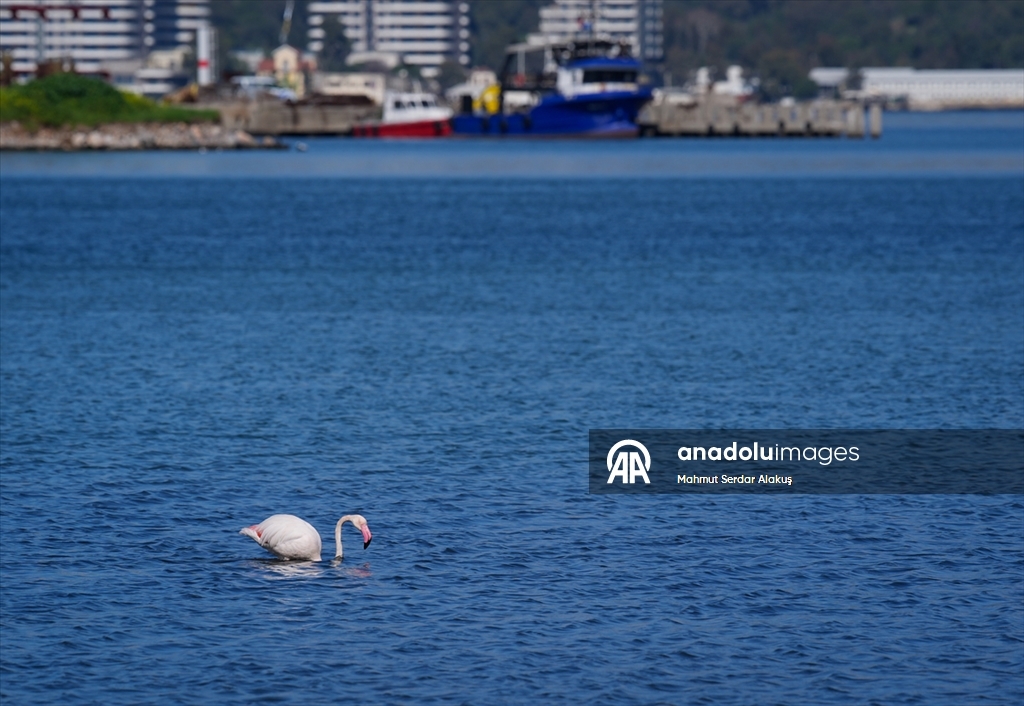 Deltanın şehrin içinde kalması nedeniyle şehirle iç içe bir görüntü veren flamingolar havaların ısınmasıyla birlikte bölgeden ayrılıyor. (Mahmut Serdar Alakuş - Anadolu Ajansı)Mahmut Serdar Alakuş