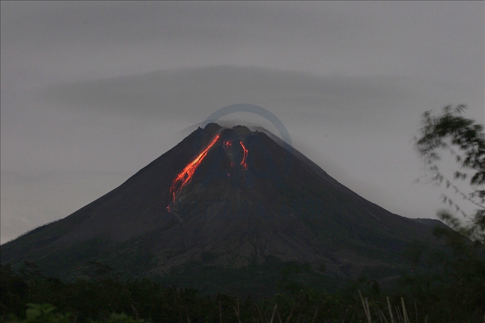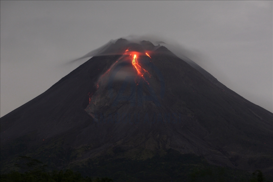Endonezya'nın Cava Adası'nda bulunan Merapi Yanardağı'nda volkanik hareketlilik devam ederken yanardağdan püsküren lavlar Yogyakarta kentinden görüntülendi.