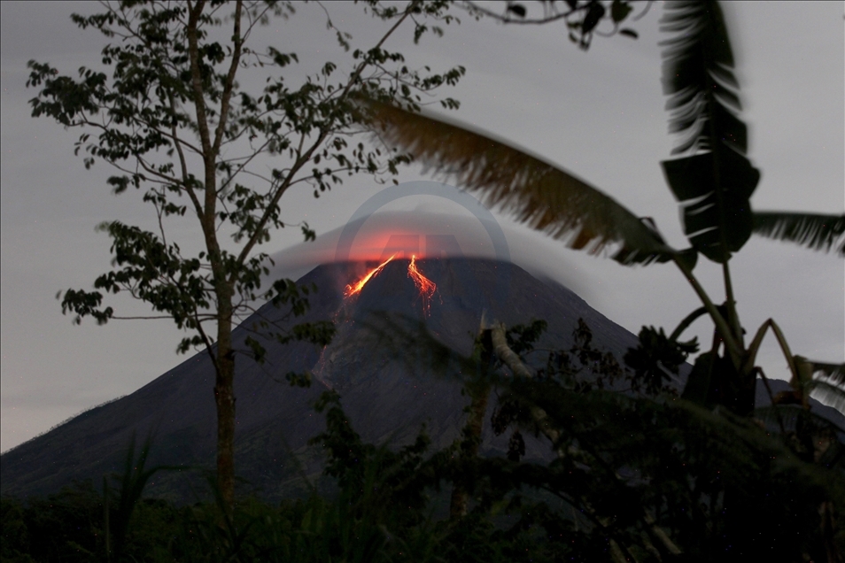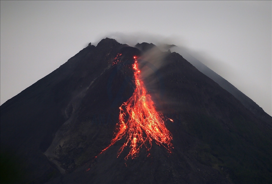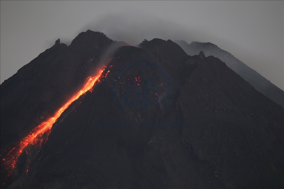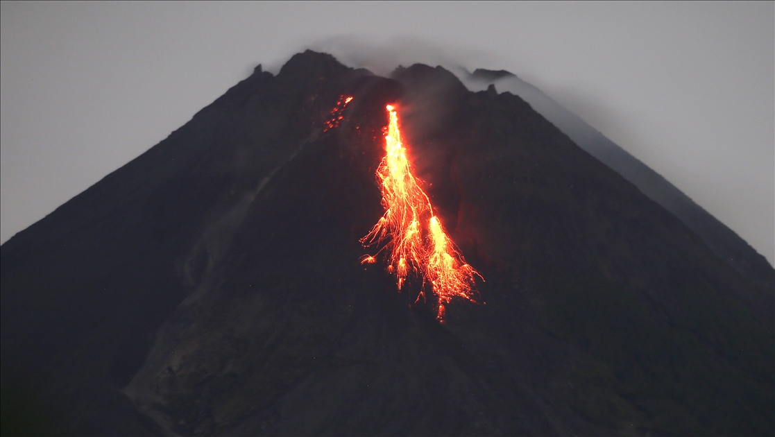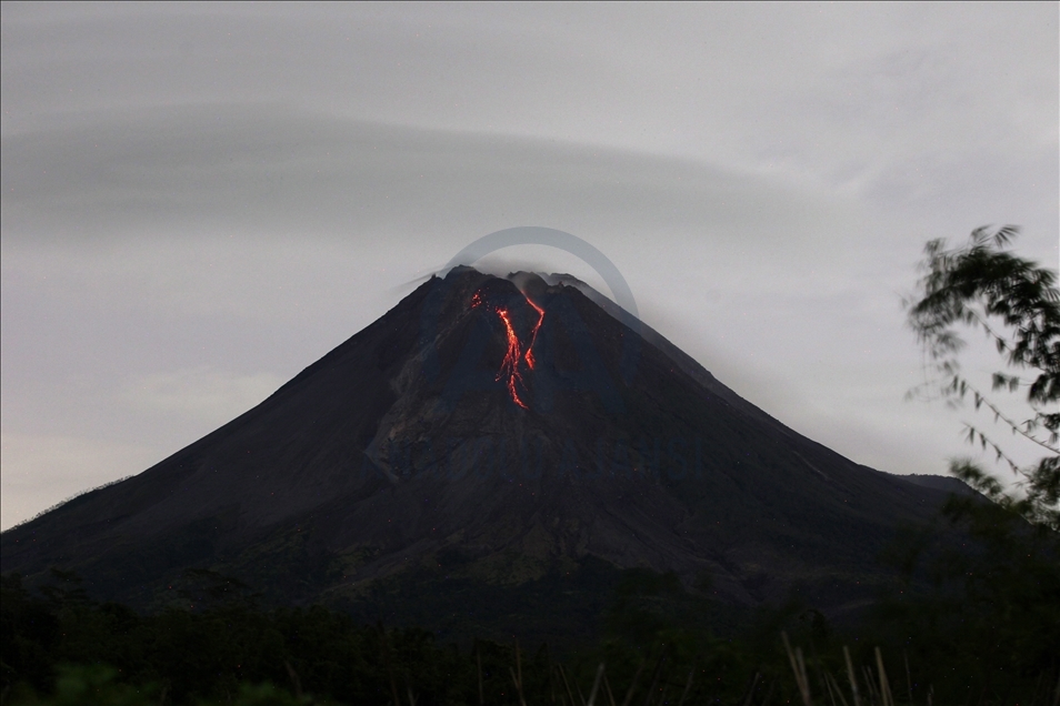 Endonezya'nın Cava Adası'nda bulunan Merapi Yanardağı'nda volkanik hareketlilik devam ederken yanardağdan püsküren lavlar Yogyakarta kentinden görüntülendi. ( Dasril Roszandi - Anadolu Ajansı )