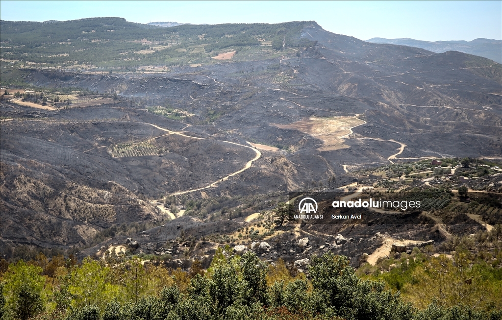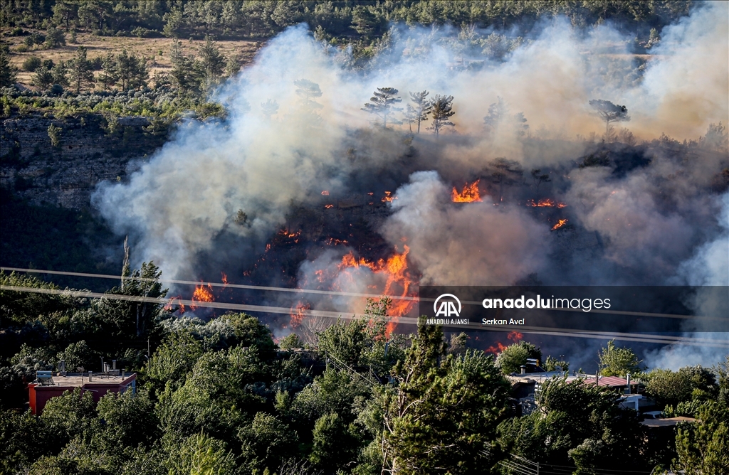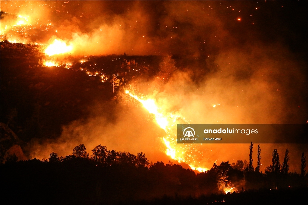 Mersin'in Gülnar ilçesinde çıkan orman yangınına müdahale sürüyor. Bölgenin sarp arazi yapısı, ekiplerin müdahalesini güçleştiriyor. ( Serkan Avci - Anadolu Ajansı )Serkan Avci