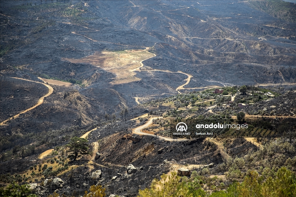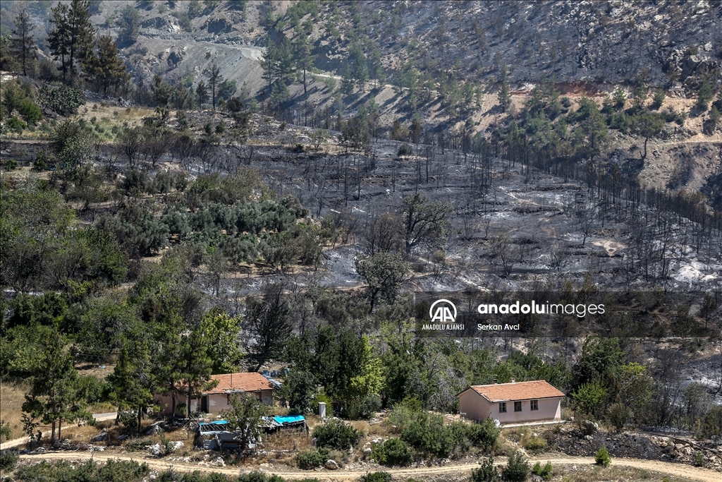Mersin'in Gülnar ilçesinde dün çıkan orman yangını, havadan ve karadan müdahaleyle kontrol altına alındı. Kavakoğulu Mahallesi'nde yanan evler ve alanlar, AA ekiplerince görüntülendi. ( Serkan Avci - Anadolu Ajansı )Serkan Avci