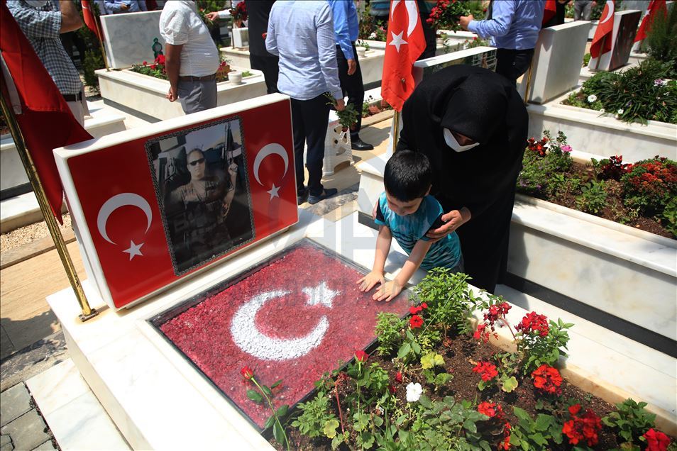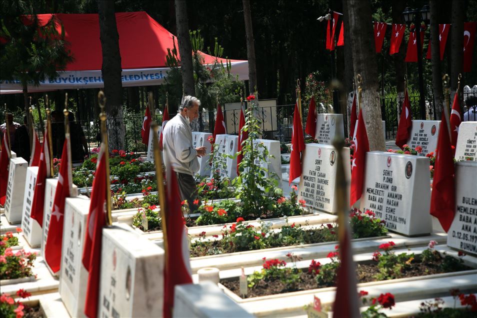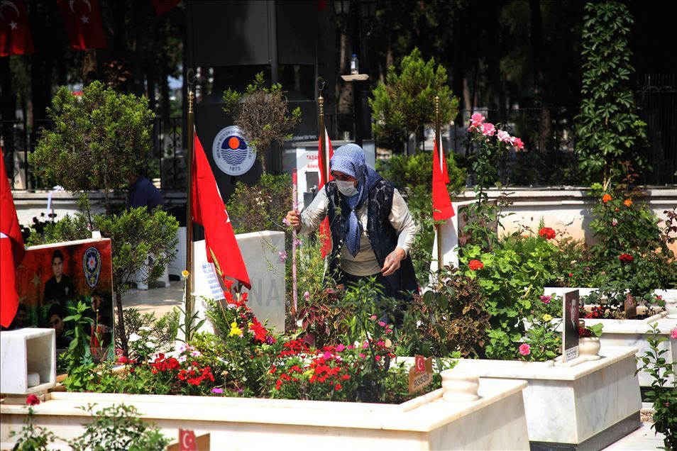 Mersin'de 'Babalar Günü dolayısıyla şehit ailelerinin mezarlık ziyaretlerinde duygusal anlar yaşandı. Şehit aileleri Akbelen Mezarlığı'ndaki şehitliğe gelerek kabirlerin temizliğini yaptı. Kabirlere diktikleri çiçekleri sulayan aileler, Babalar Günü'nde gözyaşı döktü. ( Mustafa Ünal Uysal - Anadolu Ajansı )Mustafa Ünal Uysal