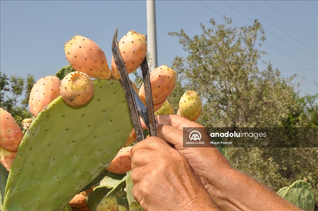 Mersin'de doğada kendiliğinden de yetişebilen ve dikenleri nedeniyle toplanması özel çaba gerektiren "dikenli incir"de hasat mesaisi günün ilk ışıklarıyla başlıyor. Dikenli olması nedeniyle toplama aşamasında özel dikkat gerektiren meyve türü, demir maşalar yardımıyla hasat edilerek kilogramı 10 liradan satılıyor.