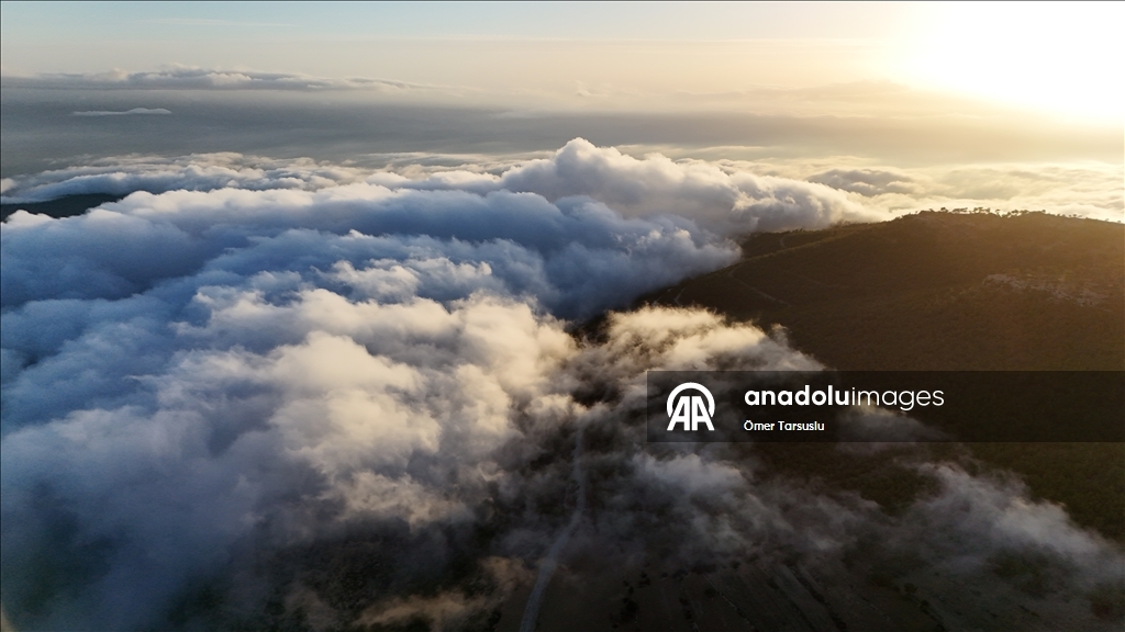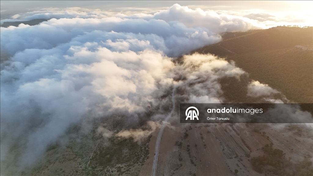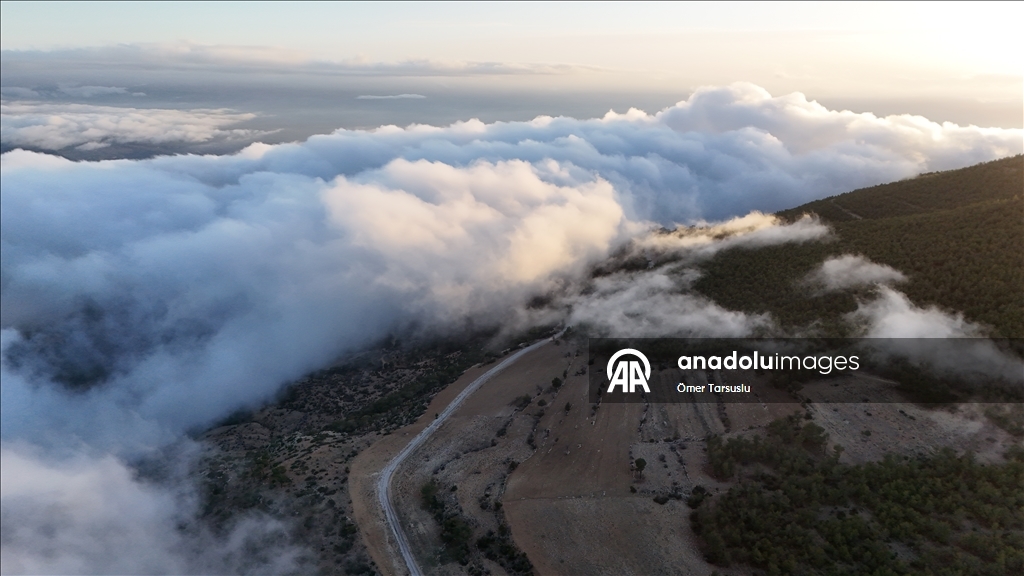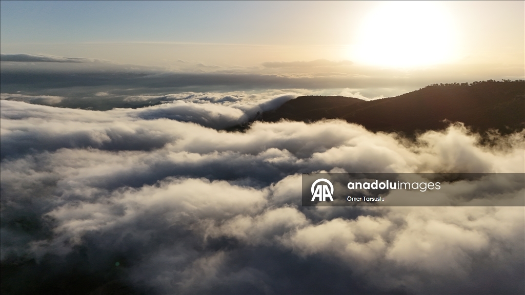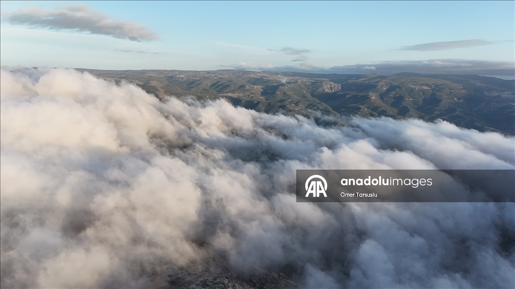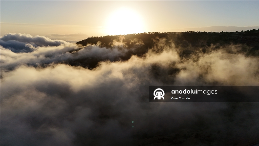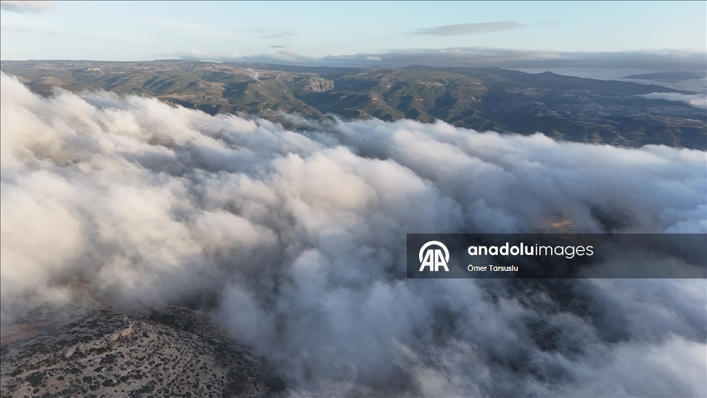 Toros Dağları'nın eteklerinde oluşan sis bulutu dronla görüntülendi.