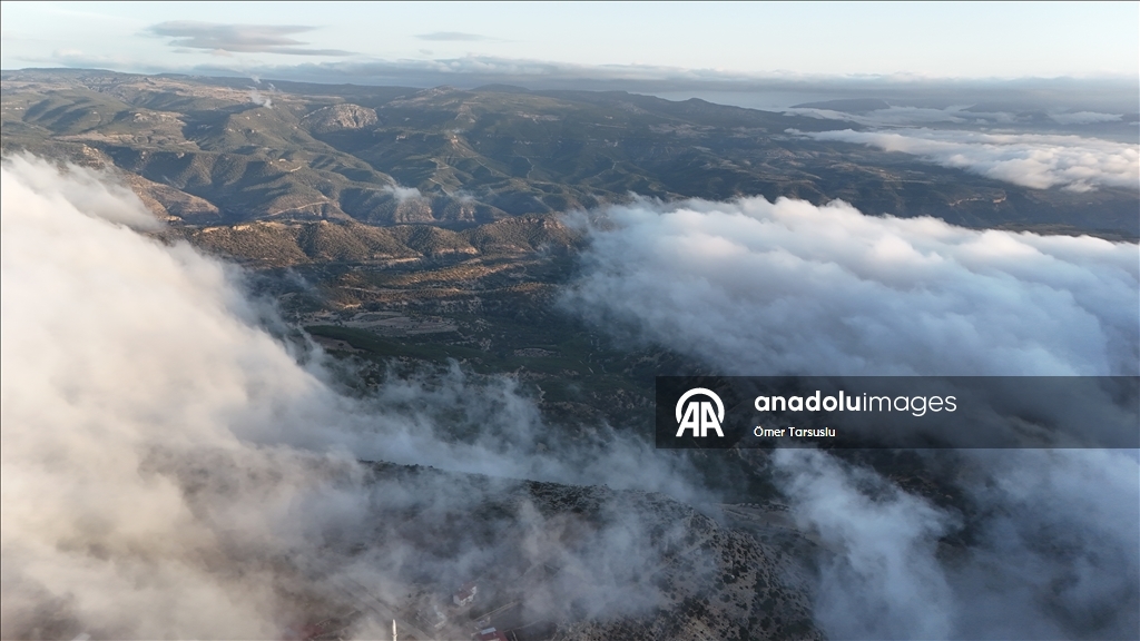 Mersin'in Mut ilçesinde etkili olan yoğun sis, Toros Dağları'nın eteklerinde güzel manzara oluşturdu.