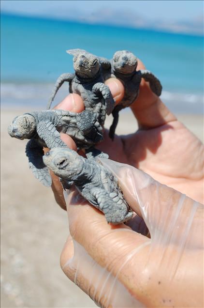 Mersin'de yavru caretta carettalar denizle buluştu