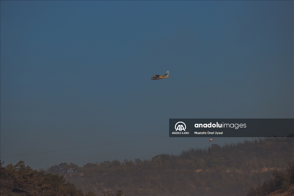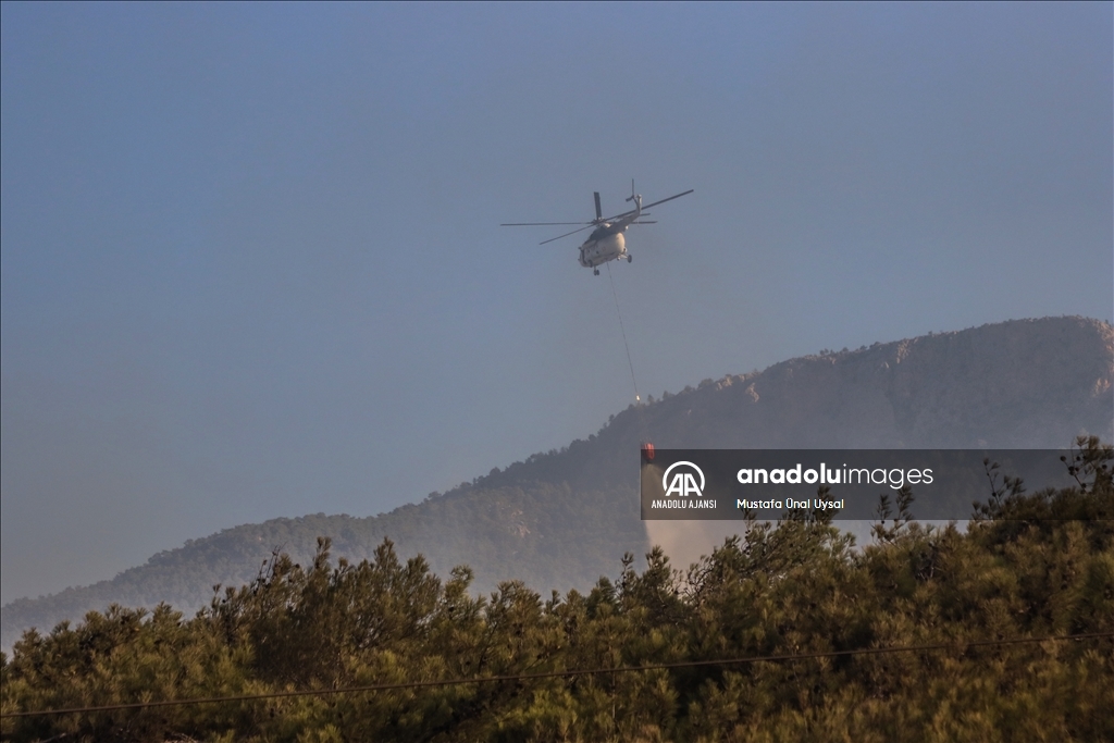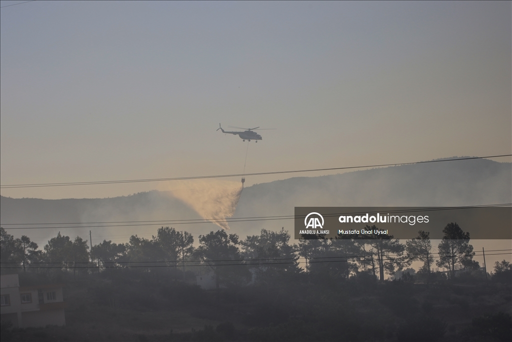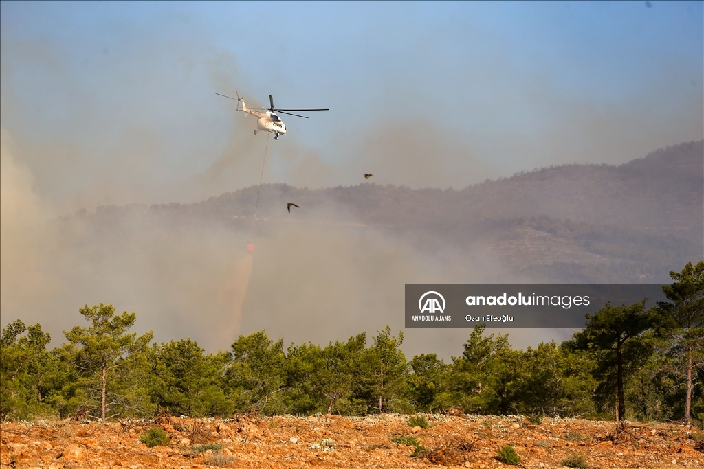 Mersin'in Gülnar ilçesinde dün sabah başlayan ve rüzgarın da etkisiyle Silifke ilçesindeki bir mahalleye kadar yayılan yangın, havadan ve karadan müdahaleyle kontrol altına alınmaya çalışılıyor. ( Ozan Efeoğlu - Anadolu Ajansı )Ozan Efeoğlu