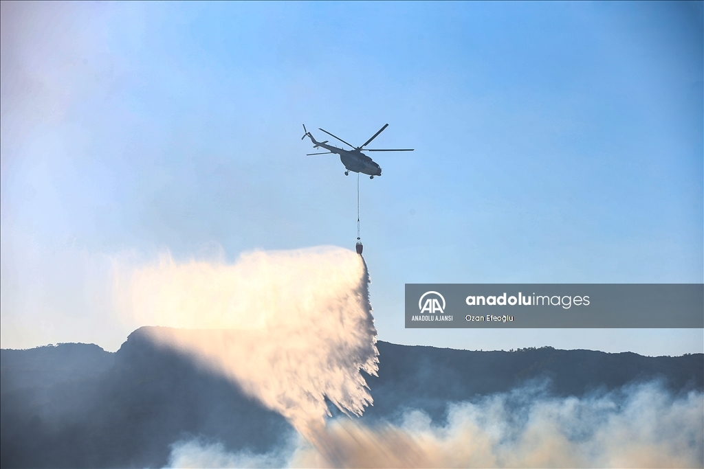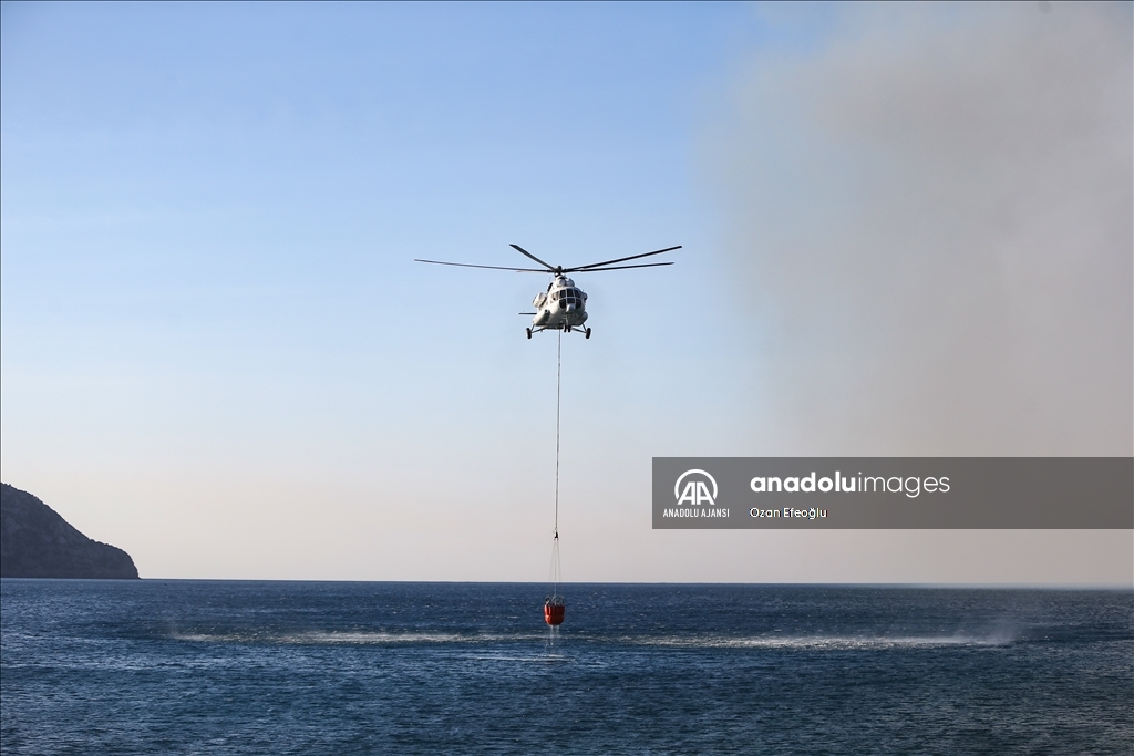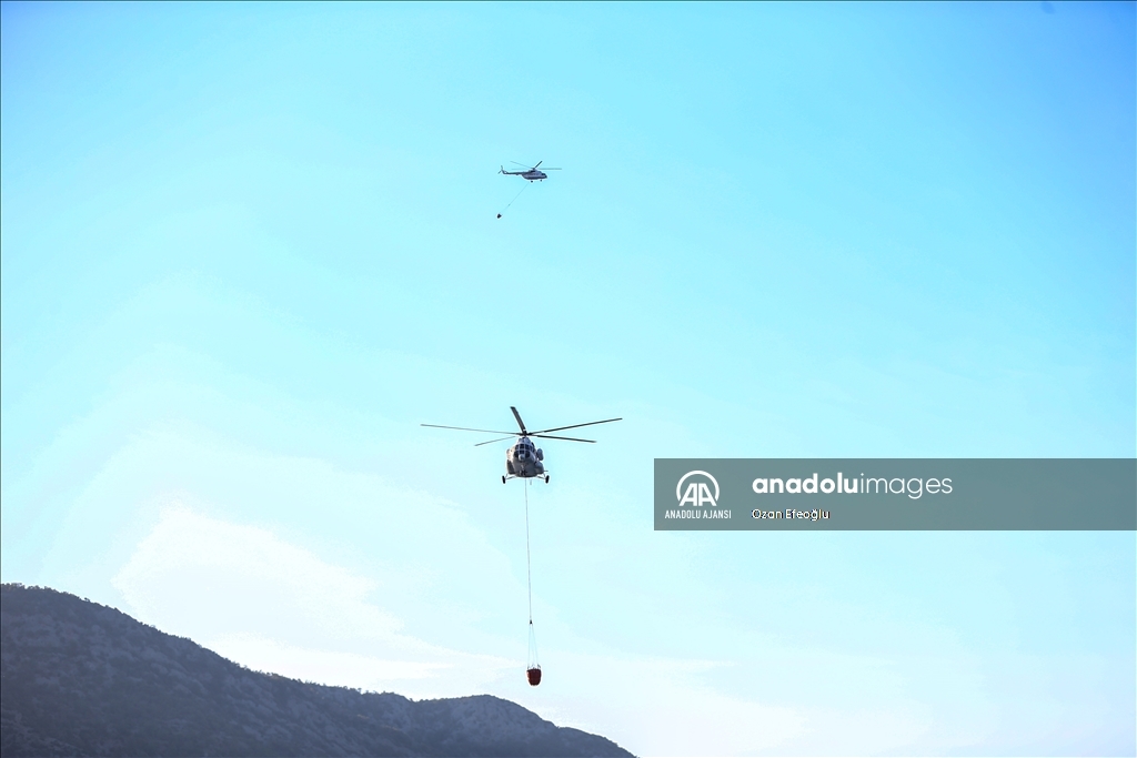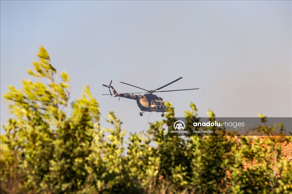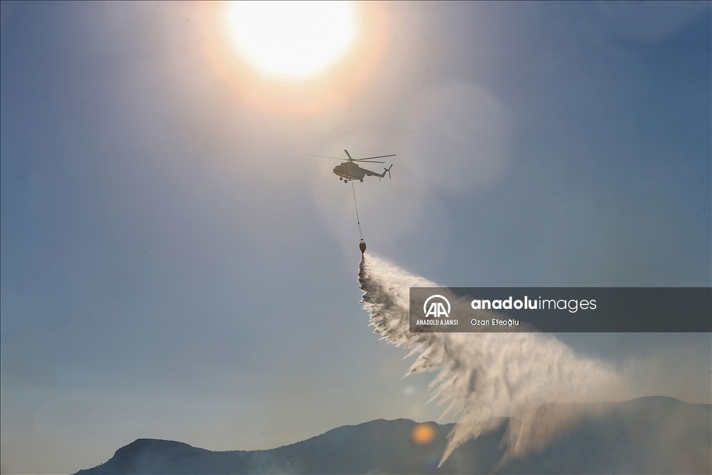 Mersin'in Gülnar ilçesinde dün sabah başlayan ve rüzgarın da etkisiyle Silifke ilçesindeki bir mahalleye kadar yayılan yangın, havadan ve karadan müdahaleyle kontrol altına alınmaya çalışılıyor. ( Ozan Efeoğlu - Anadolu Ajansı )Ozan Efeoğlu