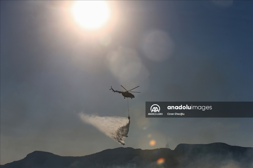 Mersin'in Gülnar ilçesinde dün sabah başlayan ve rüzgarın da etkisiyle Silifke ilçesine kadar yayılan orman yangını, havadan ve karadan müdahaleyle kontrol altına alınmaya çalışılıyor. ( Ozan Efeoğlu - Anadolu Ajansı )Ozan Efeoğlu