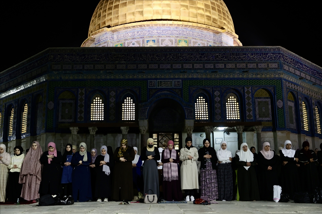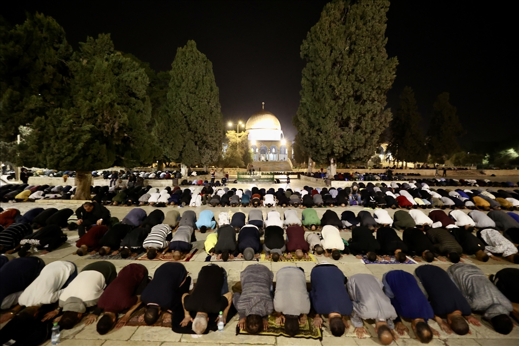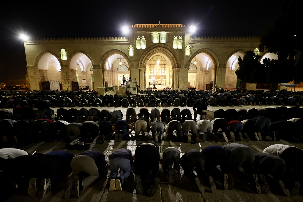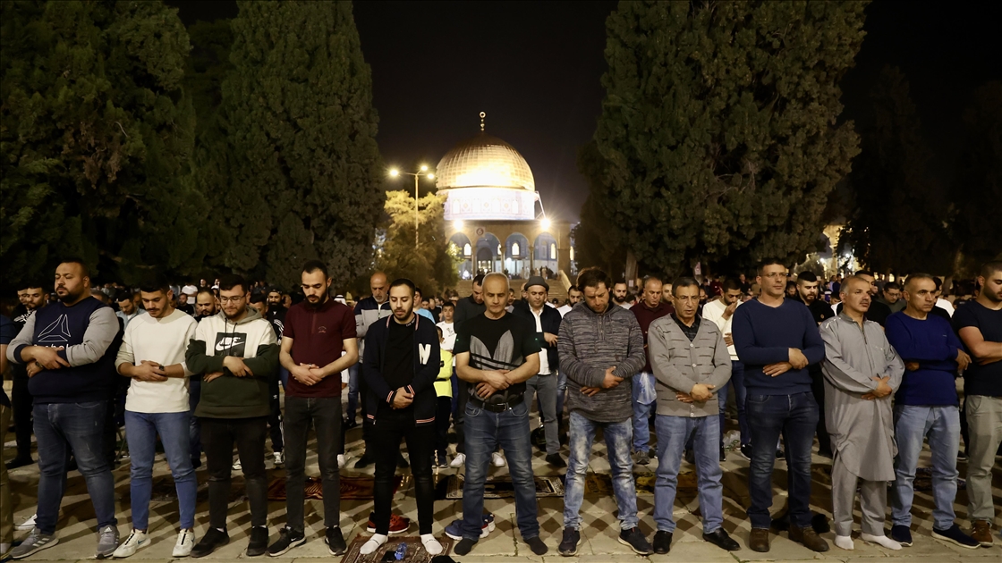 Kudüs'teki Müslümanlar, Ramazan Ayı'nın ilk Teravih Namazı'nı kılmak için Mescid-i Aksa'ya akın etti. Müslümanlar, Teravih namazını Aksa Camii'nin avlusunda kıldı.