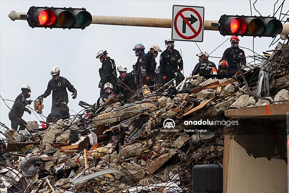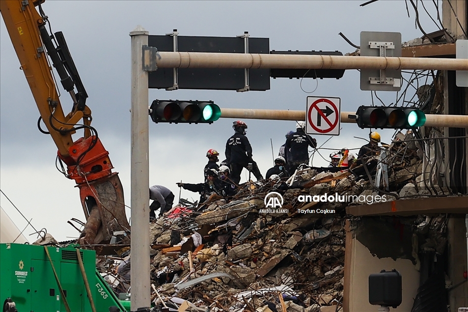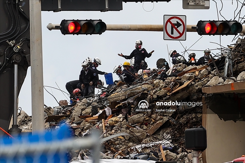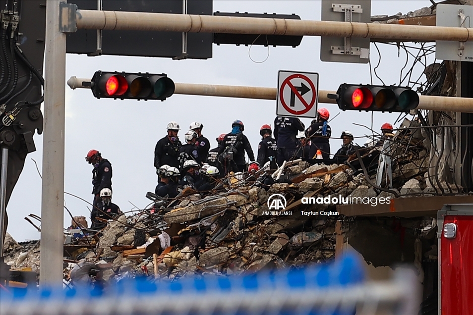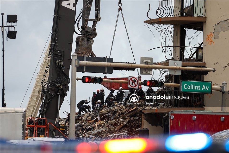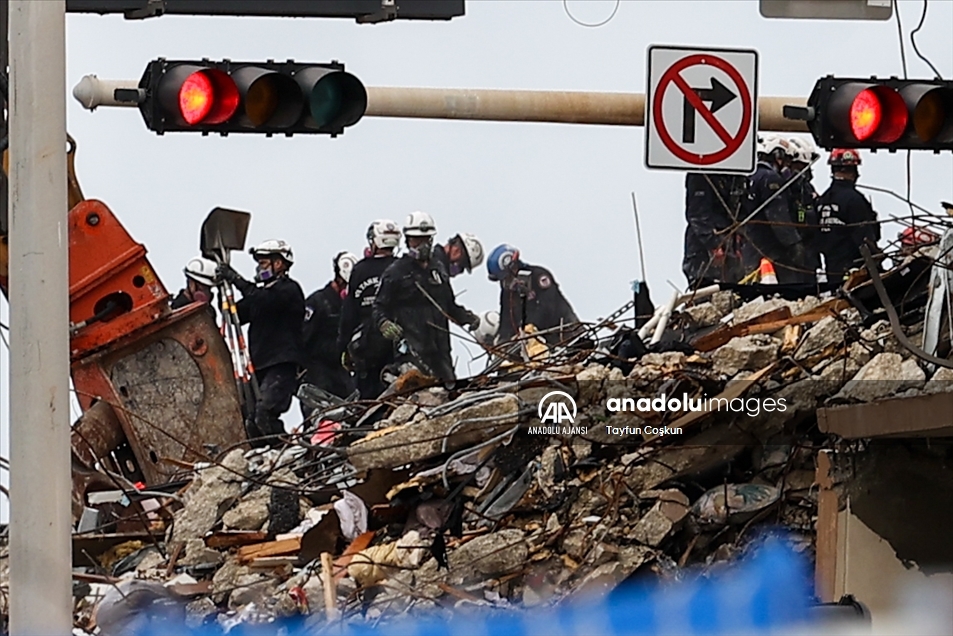ABD’nin Florida eyaleti Miami şehrinin Surfside bölgesinde 13 katlı binanın kısmen çökmesi sonucu hayatını kaybeden 2 kız çocuğunun cansız bedenine ulaşılmasıyla toplam can kaybı 18'e yükseldi. Enkaz altında olduğu düşünülen kişiler için arama kurtarma çalışmaları devam ediyor. ( Tayfun Coşkun - Anadolu Ajansı )Tayfun Coşkun