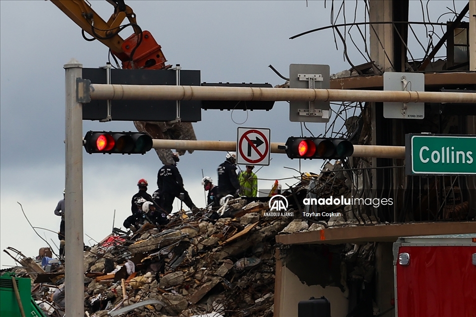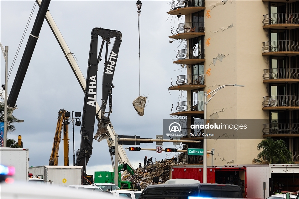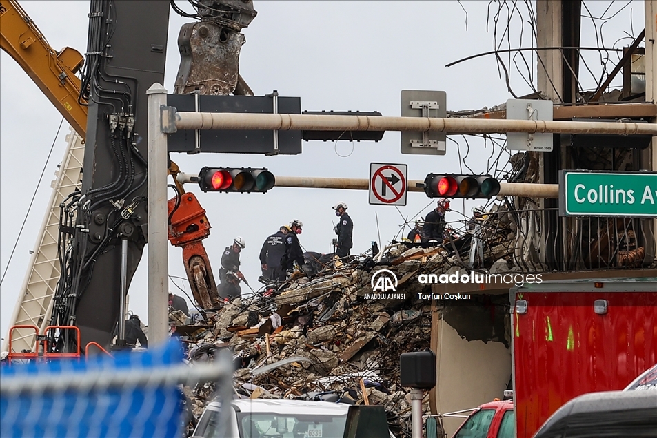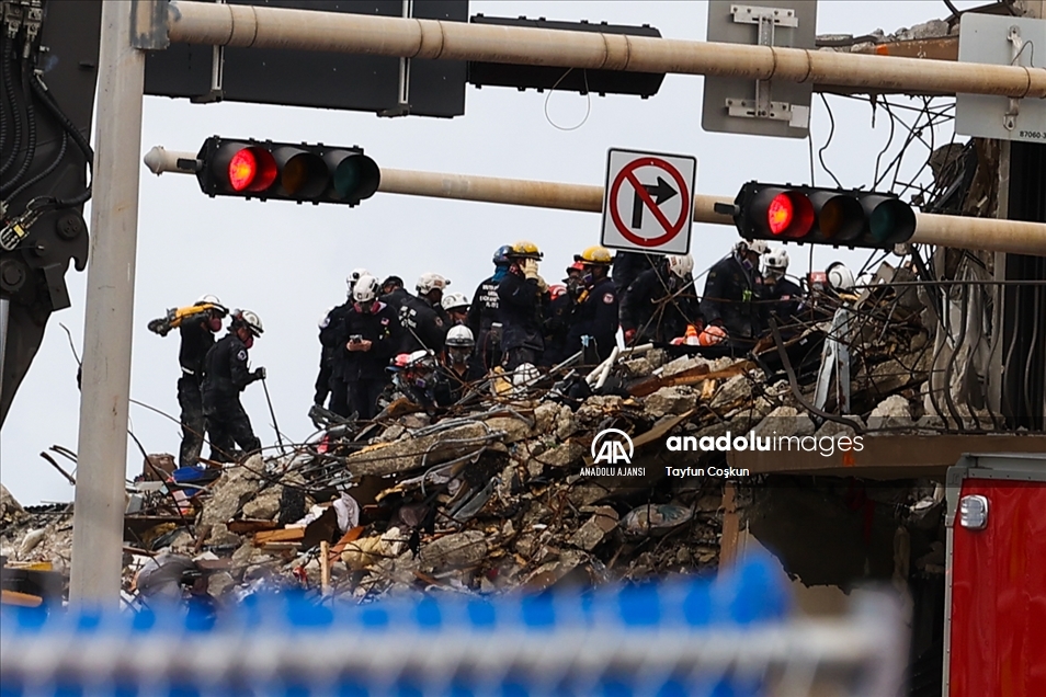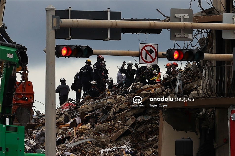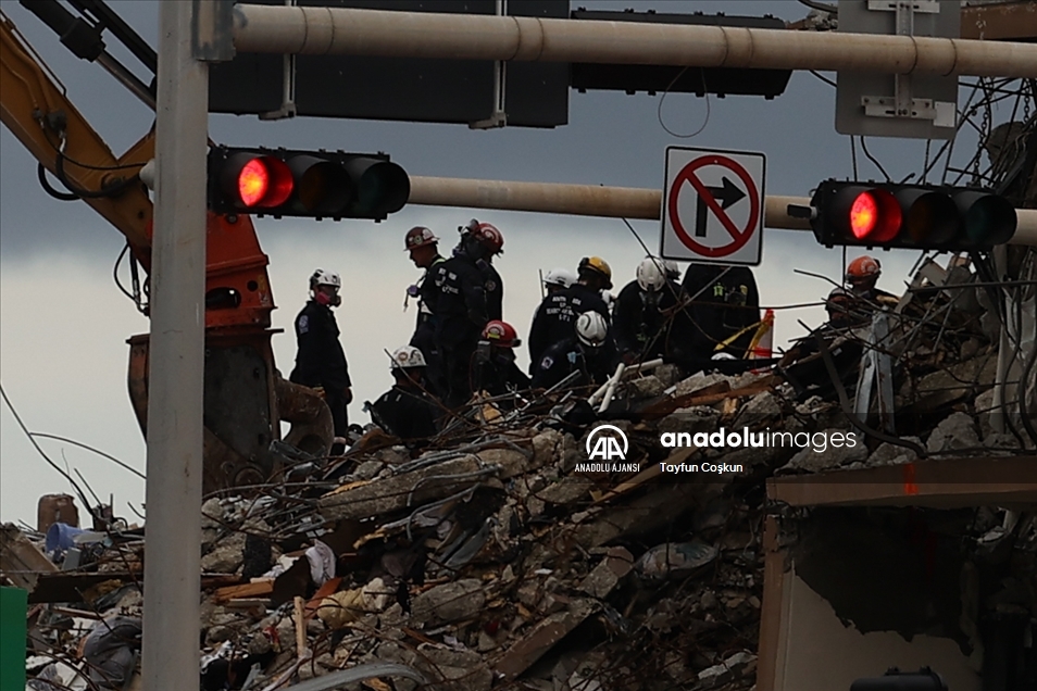 ABD’nin Florida eyaleti Miami şehrinin Surfside bölgesinde 13 katlı binanın kısmen çökmesi sonucu hayatını kaybeden 2 kız çocuğunun cansız bedenine ulaşılmasıyla toplam can kaybı 18'e yükseldi. Enkaz altında olduğu düşünülen kişiler için arama kurtarma çalışmaları devam ediyor. ( Tayfun Coşkun - Anadolu Ajansı )Tayfun Coşkun