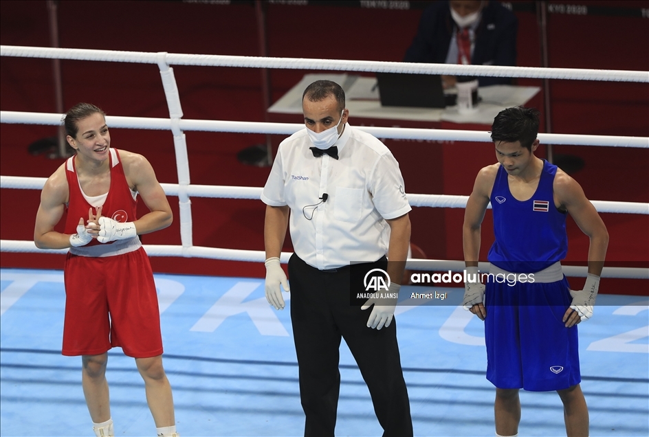 2020 Tokyo Olimpiyat Oyunları'nın 9. gününde boks branşında kadınlar 51 kiloda Buse Naz Çakıroğlu, yarı finale yükseldi ve olimpiyat madalyasını garantiledi. Kokugikan Arena'da çeyrek finalde Buse Naz, Taylandlı sporcu Jutamas Jitpong'la mücadele etti. ( Ahmet İzgi - Anadolu Ajansı )Ahmet İzgi