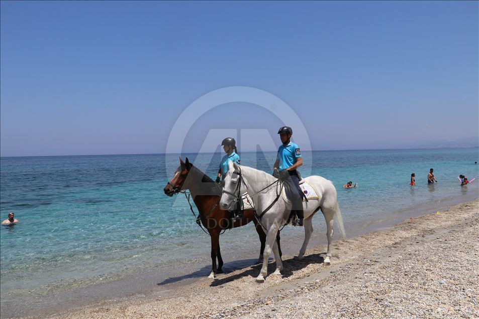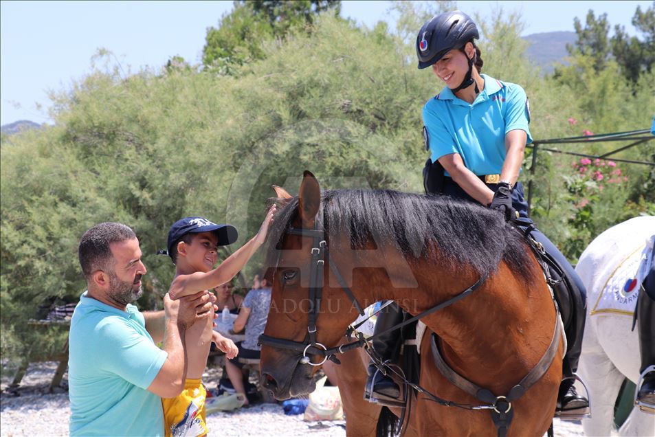 Nevşehir Jandarma At ve Köpek Eğitim Merkezi Komutanlığından getirilen "Başak", "Ayperi" ve "Ülkem" isimli atlar, Aydın'ın Kuşadası ilçesinde göreve başladı. Güvenliği sağlayan atlı timler, tatil için gelenlerin de ilgi odağı oluyor. Bazı vatandaşlar atlarla fotoğraf çektiriyor.