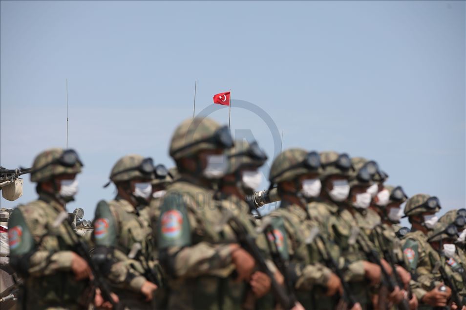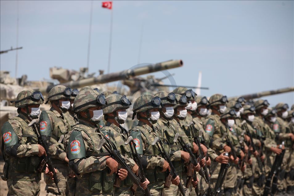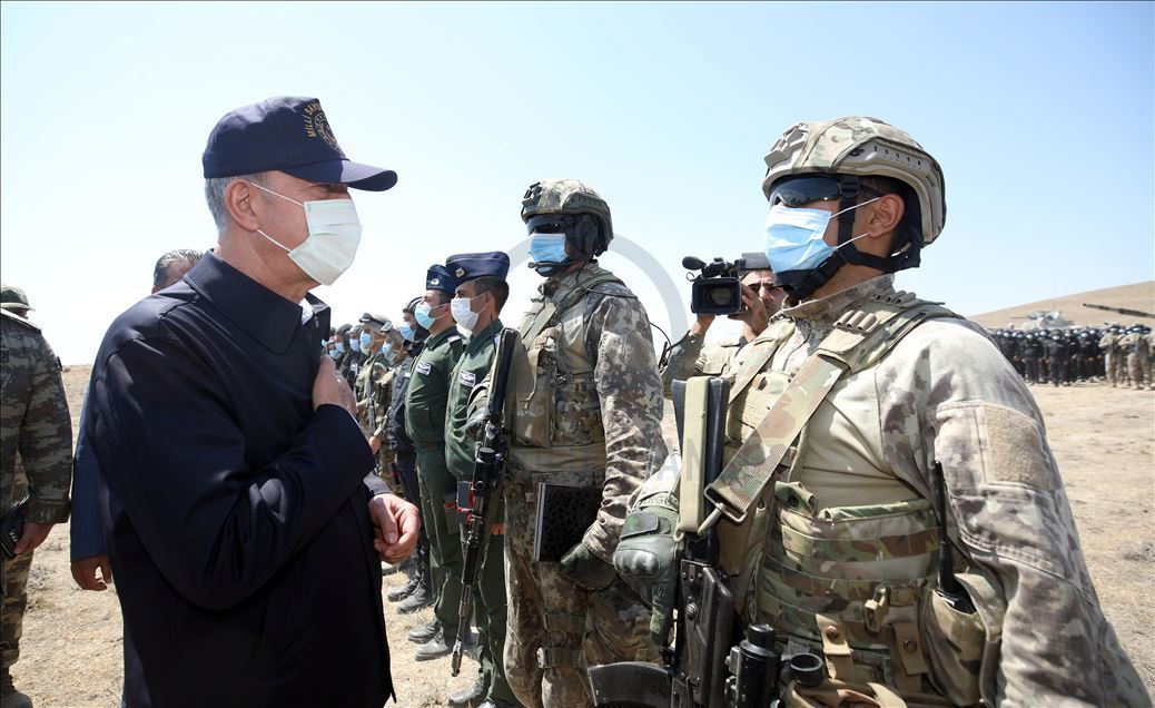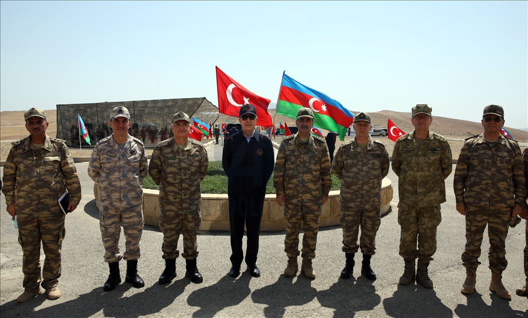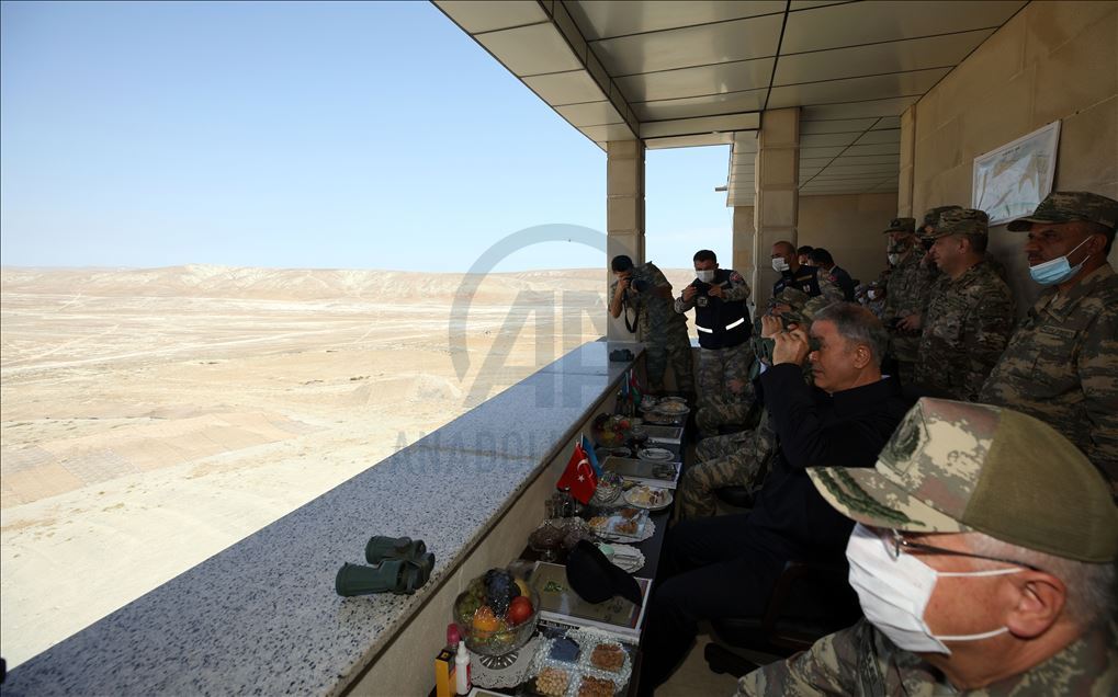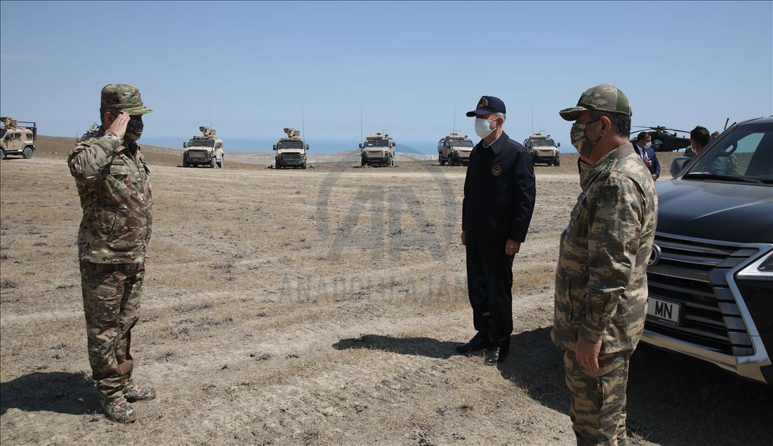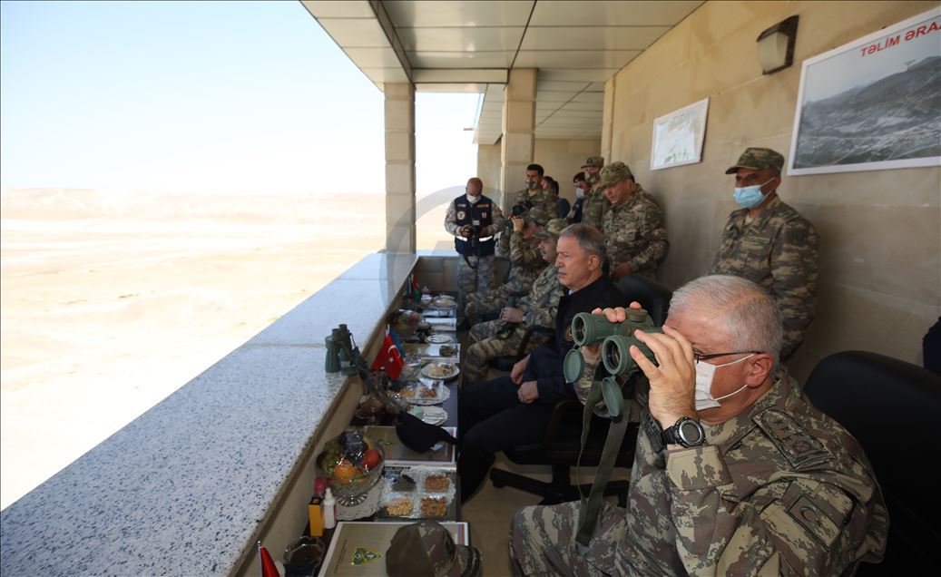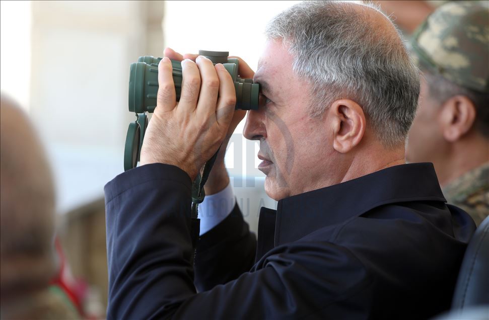 Milli Savunma Bakanı Hulusi Akar, beraberinde Genelkurmay Başkanı Orgeneral Yaşar Güler, Kara Kuvvetleri Komutanı Orgeneral Ümit Dündar, Hava Kuvvetleri Komutanı Orgeneral Hasan Küçükakyüz ve Deniz Kuvvetleri Komutanı Oramiral Adnan Özbal ile Azerbaycan ve Türk Şehitliği’ne yaptığı ziyaretin ardından Türkiye-Azerbaycan Fiili Atışlı Ortak/Müşterek Tabur Görev Kuvveti Tatbikatı’nın Seçkin Gözlemci Günü’ne katılmak üzere kara yoluyla Pirekeşkül’e gitti. Akar ve TSK komuta kademesinin de katıldığı Türkiye-Azerbaycan Fiili Atışlı Ortak/Müşterek Tabur Görev Kuvveti Tatbikatı’nın Seçkin Gözlemci Günü başarıyla tamamlandı. ( Arif Akdoğan - Anadolu Ajansı )Arif Akdoğan
