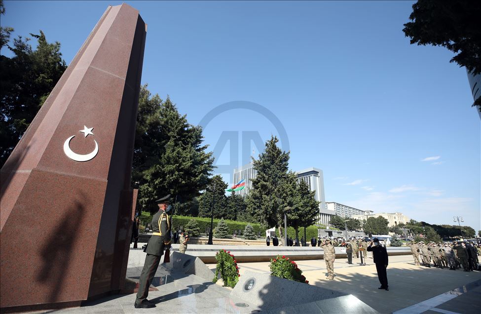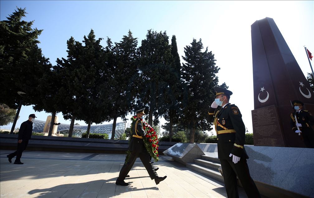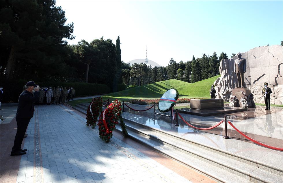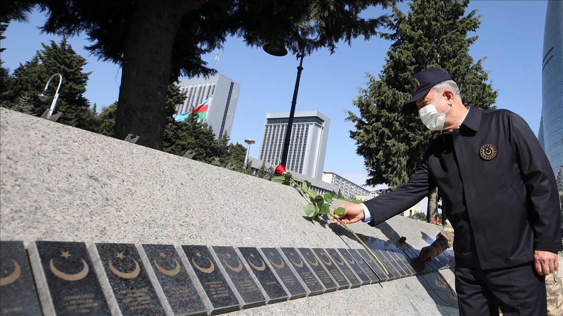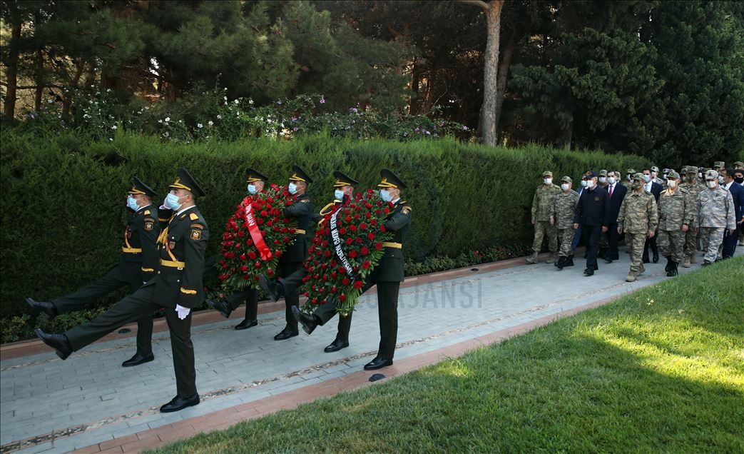 Milli Savunma Bakanı Hulusi Akar beraberinde Genelkurmay Başkanı Orgeneral Yaşar Güler, Kara Kuvvetleri Komutanı Orgeneral Ümit Dündar, Hava Kuvvetleri Komutanı Orgeneral Hasan Küçükakyüz ve Deniz Kuvvetleri Komutanı Oramiral Adnan Özbal ile geldiği Azerbaycan'daki temasları kapsamında Azerbaycan ve Türk Şehitliği'ni ziyaret etti. ( Arif Akdoğan - Anadolu Ajansı )Arif Akdoğan