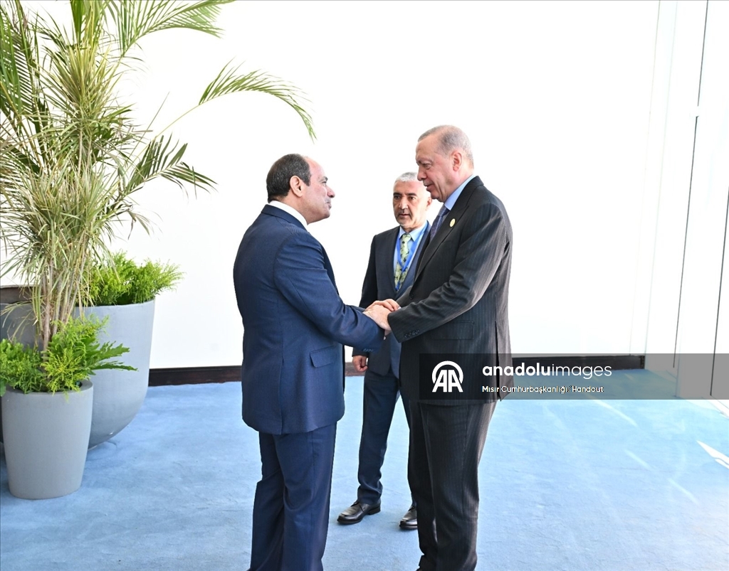 Cumhurbaşkanı Erdoğan'ı zirvenin ev sahibi Mısır Cumhurbaşkanı Abdulfettah es-Sisi karşıladı.