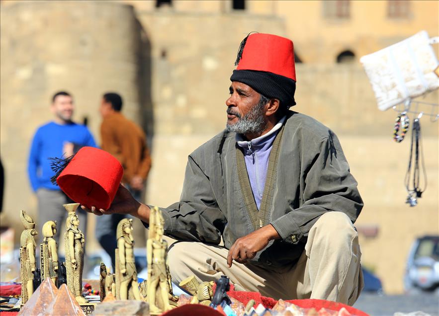 MISIR'IN BASKENTI KAHIRE'DE MEHMET ALI PASA CAMISI ZIYARETCI AKININA UGRUYOR. CAMININ ONUNDE OSMANLI DONEMINDE KULLANILAN OSMANLI FESLERI TURISTLERE SATILIYOR. (ANADOLU AJANSI - ALI IHSAN OZTURK) (20130216)ALI IHSAN OZTURK