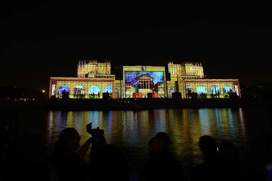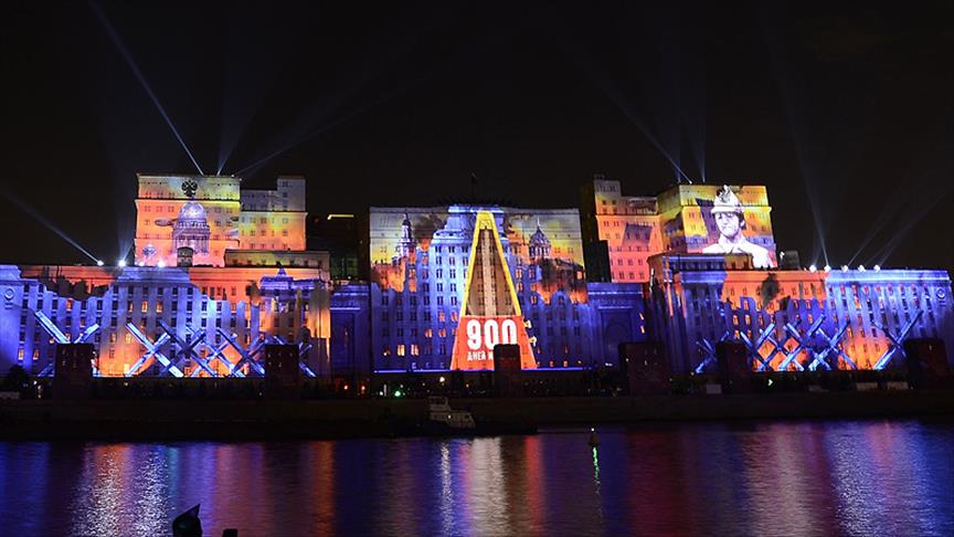 Rusya'nın başkenti Moskova'da Uluslararası Işık Festivali, Savunma Bakanlığı binası dış yüzeyinde hazırlanan özel gösterimle başladı.