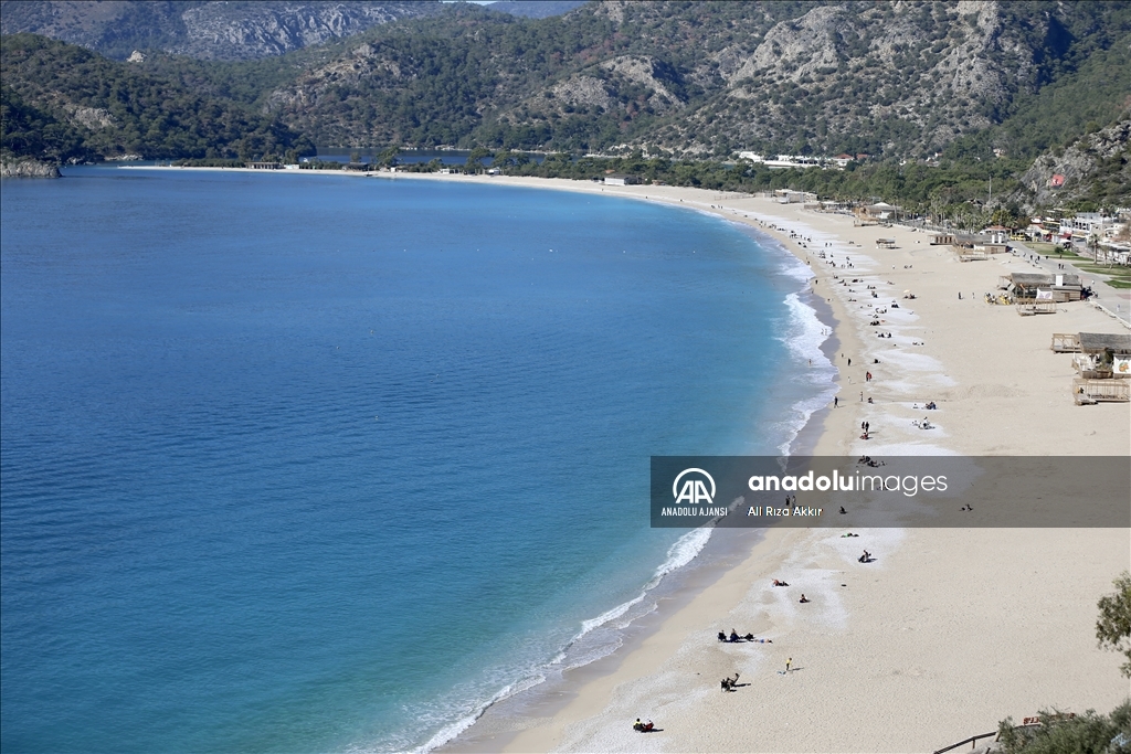Hava sıcaklığının 17 derece ölçüldüğü Fethiye'de, ilçe sakinlerinin yanı sıra bazı yerli ve yabancı turistler denize girip güneşlendi.Ali Rıza Akkır