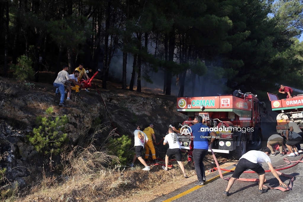 Muğla'nın Menteşe ilçesinde çıkan orman yangını havadan ve karadan müdahaleyle kontrol altına alındı. Yangına müdahale eden vatandaşlar iki kaplumbağayı alevlerin arasından kurtararak güvenli bölgeye götürdü. ( Osman Akça - Anadolu Ajansı )Osman Akça