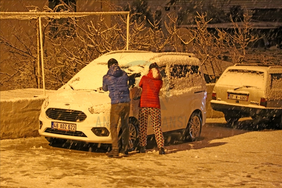 Muğla'da kar yağışı hayatı olumsuz etkiliyor. Yüksek kesimlerde gün boyunca süren kar yağışı, kent merkezindeki mahallelerde de akşam saatlerinden itibaren aralıklarla etkisini gösterdi. Uzun yıllar kar yağmayan Menteşe'de bazı ilçe sakinleri, dışarı çıkarak karla oynadı. ( Osman Akça - Anadolu Ajansı )Osman Akça