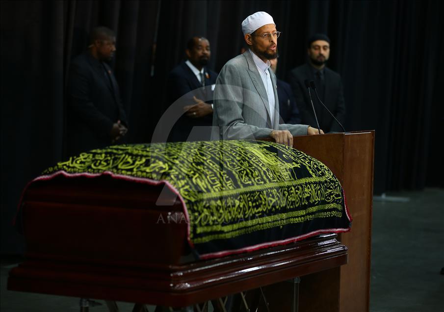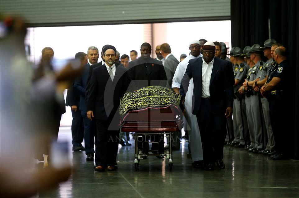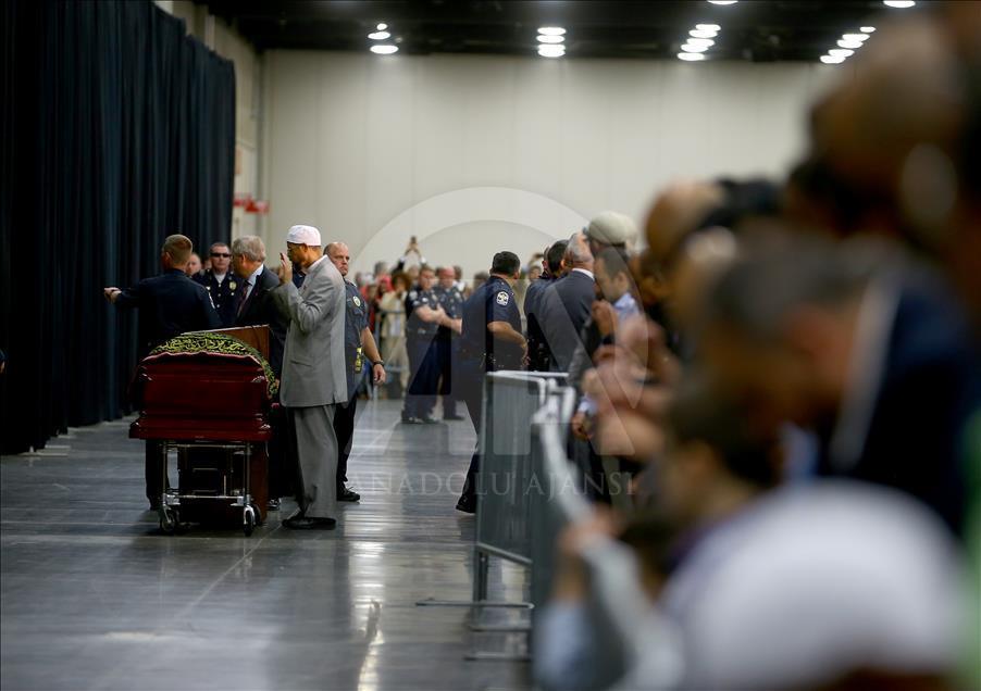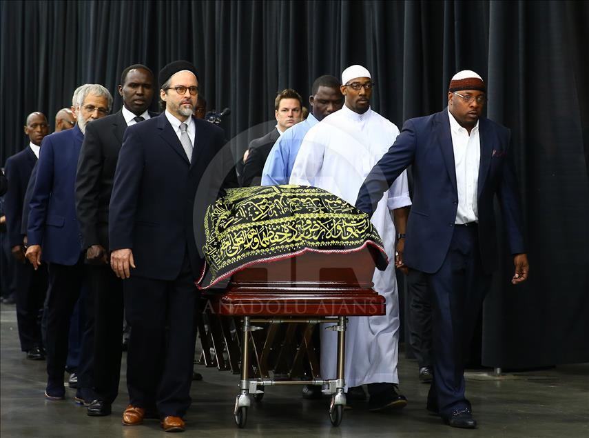 Solunum yollarındaki rahatsızlık nedeniyle 74 yaşında hayatını kaybeden ABD'li efsane boksör ve insan hakları savunucusu Muhammed Ali'nin iki gün sürecek cenaze töreni bugün Lousiville'de kılınan cenaze namazı ile başladı. Tabutun üzerindeki örtüde Kuran'ı Kerim'den ayetlerin olduğu görülürken tabutun önünde Amerikalı Müslüman toplum önderleri bir süre bekledi. İmam Zaid Shakir cenaze namazı hakkında kısa bilgi verdikten sonra namazı kıldırdı.