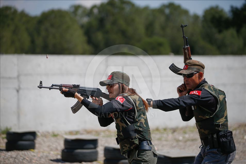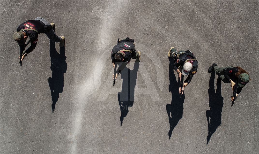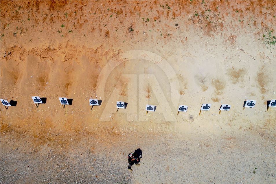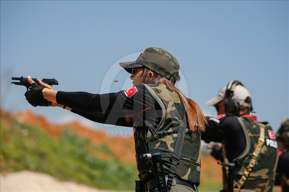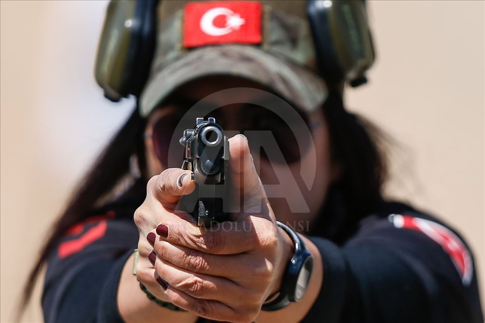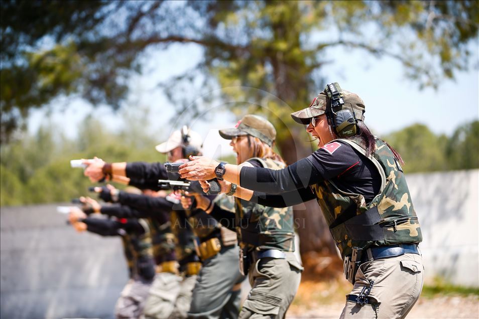 Antalya Emniyet Müdürlüğü Atış Poligonu'ndaki 2'si kadın 8 kişilik ekip, eğittikleri meslektaşlarının hızlı ve tam isabetle silah kullanabilmesi için özverili çalışıyor.