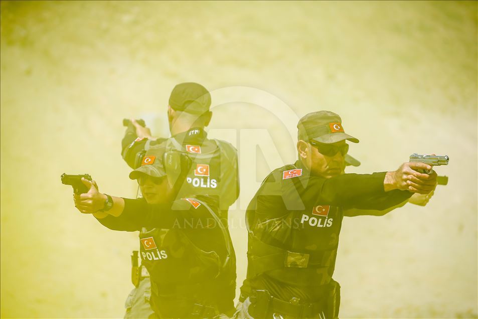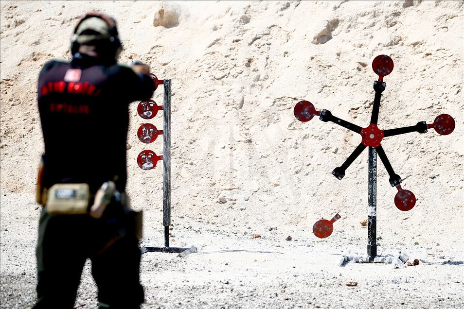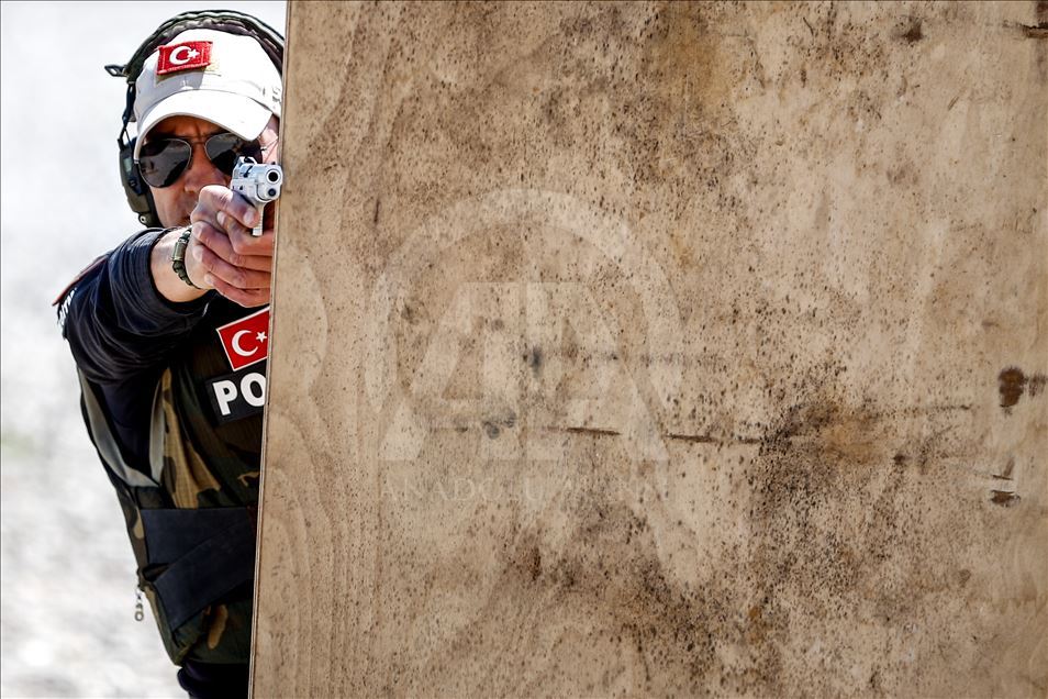 Antalya Emniyet Müdürlüğü Atış Poligonu'ndaki 2'si kadın 8 kişilik ekip, eğittikleri meslektaşlarının hızlı ve tam isabetle silah kullanabilmesi için özverili çalışıyor. Antalya Emniyet Müdürlüğü Eğitim Şube Müdürü Suat Esin (fotoğrafta) konuya ilişkin açıklamalarda bulundu. ( Mustafa Çiftçi - Anadolu Ajansı )Mustafa Çiftçi