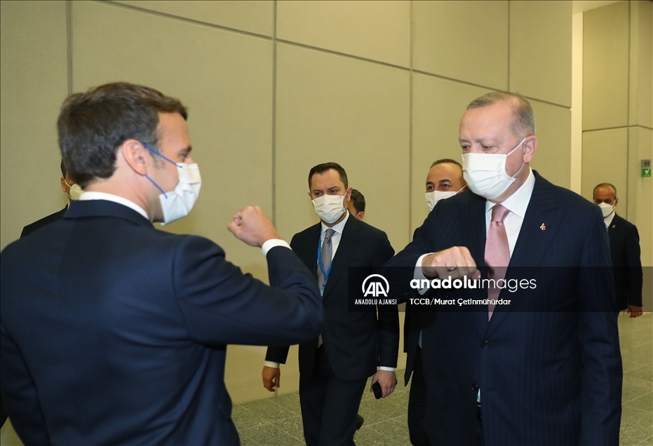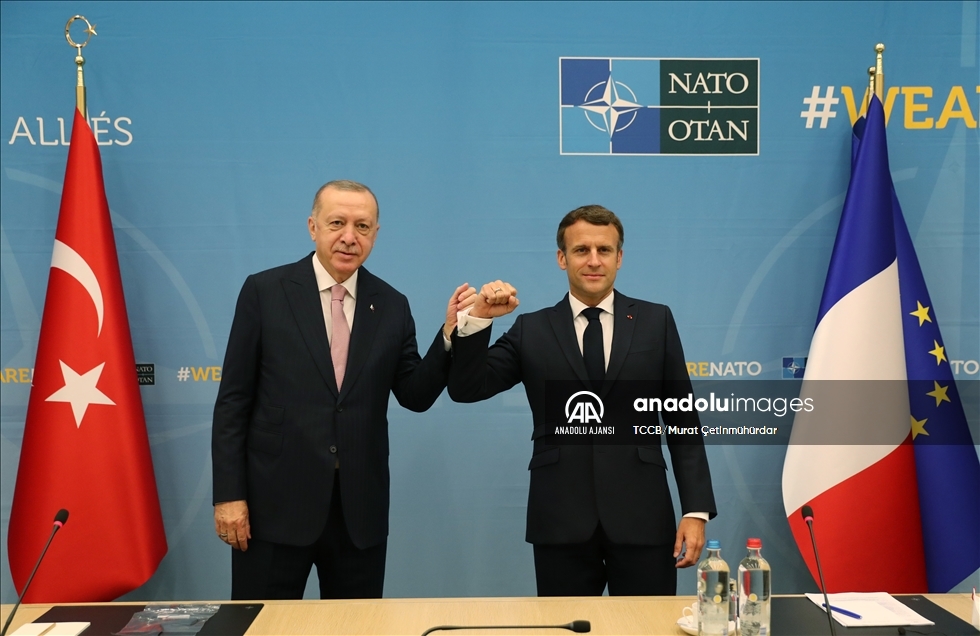 Türkiye Cumhurbaşkanı Recep Tayyip Erdoğan, NATO Liderler Zirvesi'ne katılmak üzere geldiği Brüksel'deki ikili temasları kapsamında Fransa Cumhurbaşkanı Emmanuel Macron ile görüştü. ( TCCB/Murat Çetinmühürdar - Anadolu Ajansı )TCCB/Murat Çetinmühürdar