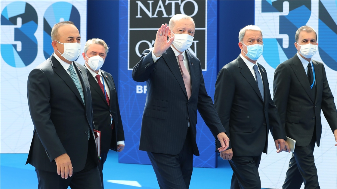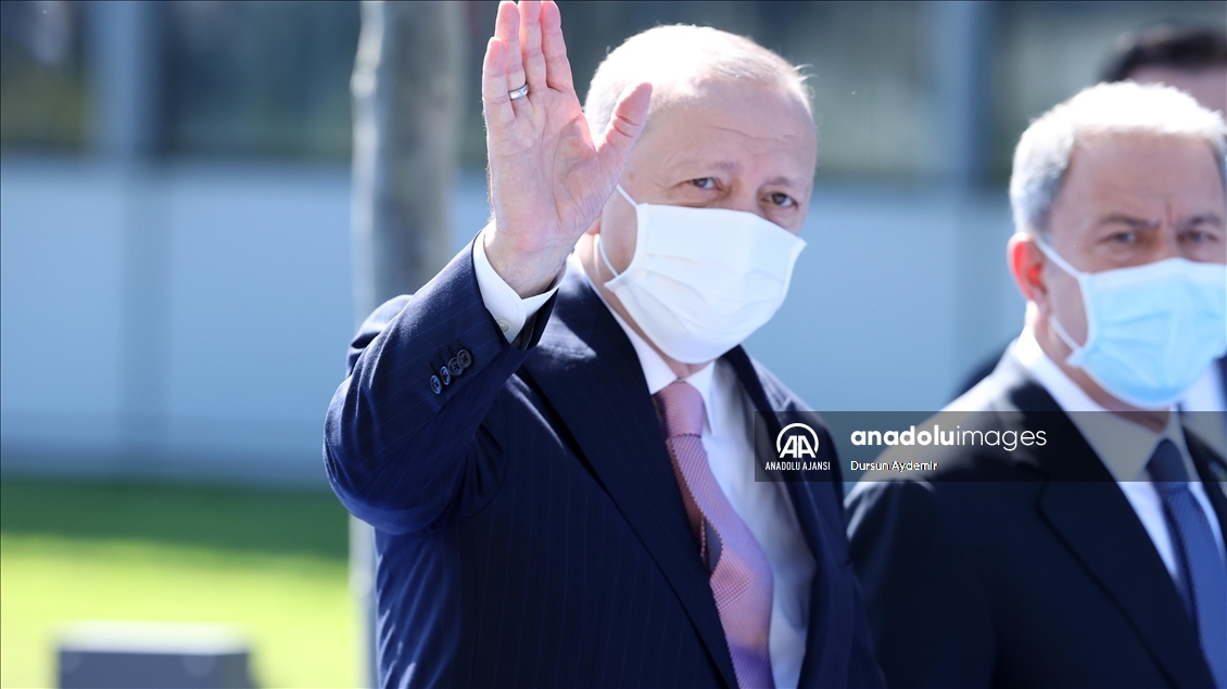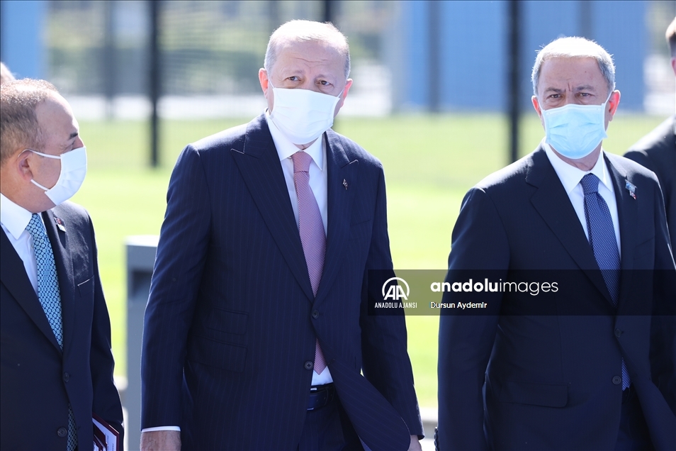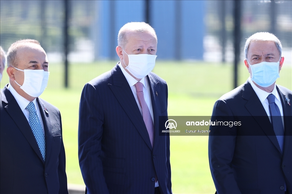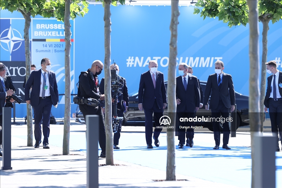 Türkiye Cumhurbaşkanı Recep Tayyip Erdoğan, NATO Liderler Zirvesi'ne katılmak üzere Brüksel'deki NATO Karargahına geldi. Cumhurbaşkanı Erdoğan'a Dışişleri Bakanı Mevlüt Çavuşoğlu ve Milli Savunma Bakanı Hulusi Akar da eşlik etti. ( Dursun Aydemir - Anadolu Ajansı )Dursun Aydemir