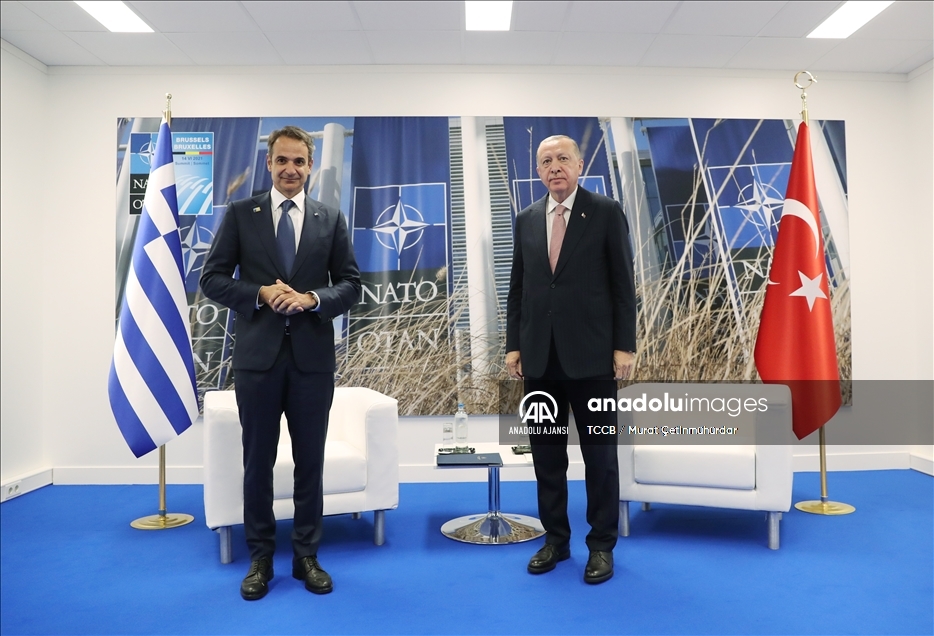 Türkiye Cumhurbaşkanı Recep Tayyip Erdoğan'ın, NATO Zirvesi kapsamında Yunanistan Başbakanı Miçotakis ile görüşmesi başladı. ( TCCB / Murat Çetinmühürdar - Anadolu Ajansı )TCCB / Murat Çetinmühürdar