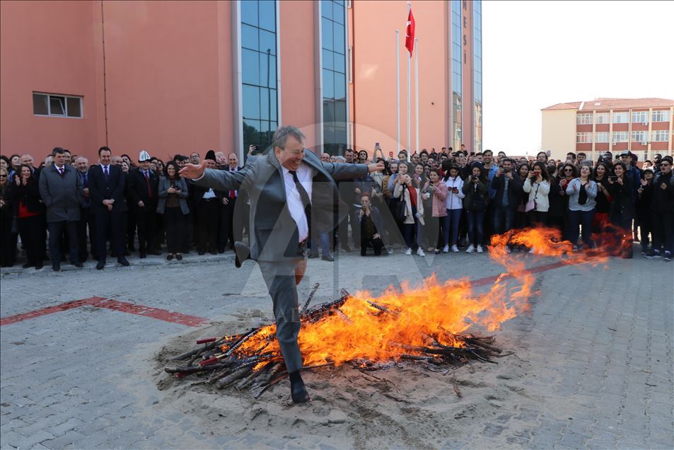 Trakya Üniversitesinde 21 Mart Nevruz Bayramı çeşitli etkinliklerle kutlandı. TÜ Rektörü Prof. Dr. Erhan Tabakoğlu, ateşten atladı. ( Cihan Demirci - Anadolu Ajansı )Cihan Demirci