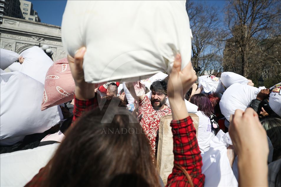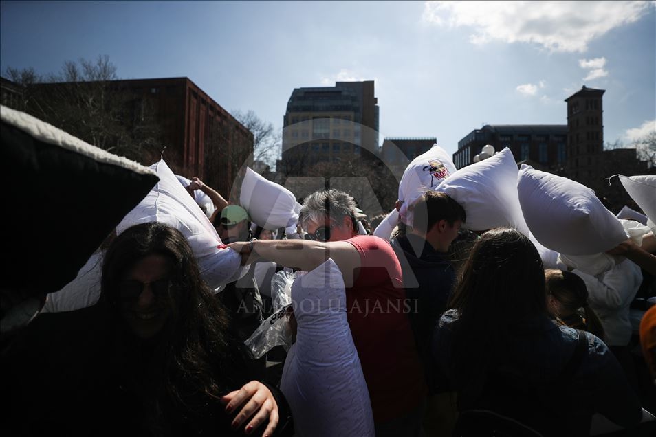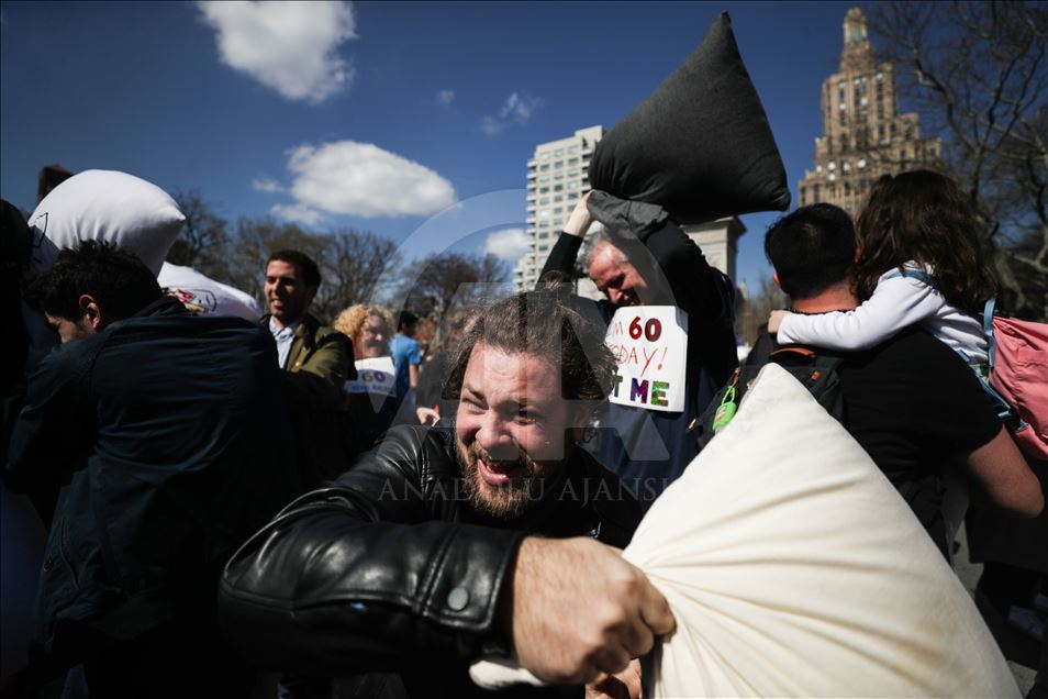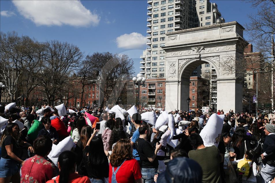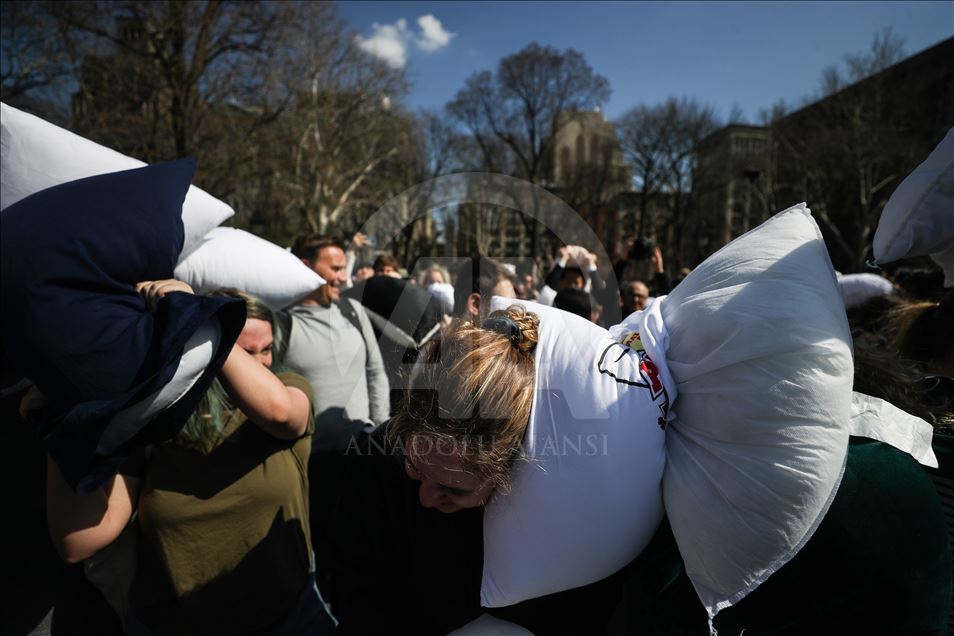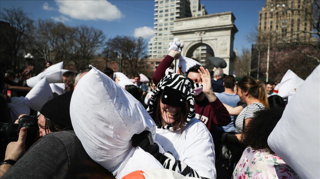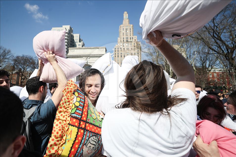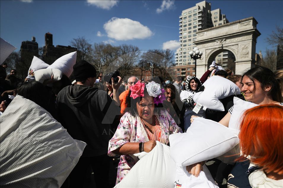 ABD'nin New York kentindeki Washington Square Park'da, her yıl nisan ayında gerçekleştirilen "Uluslararası Yastık Savaşı Günü" kapsamında, bir araya gelenler yastık savaşı yaptı.Yanlarında getirdikleri yastıklarla birbirlerine saldıran gruplar, renkli görüntüler oluşturdu.