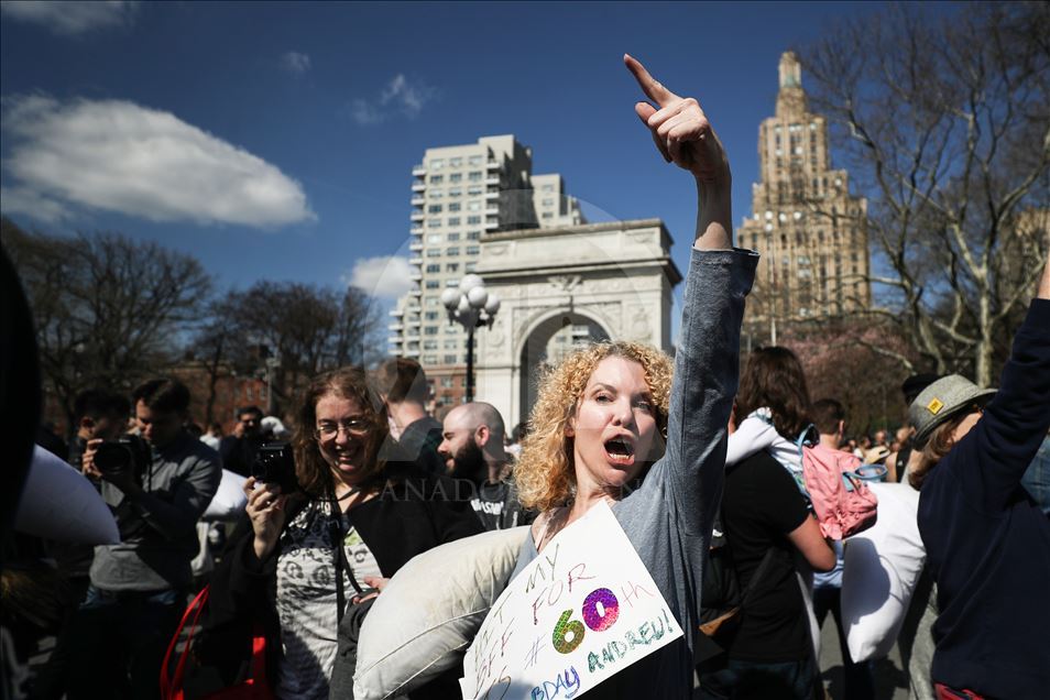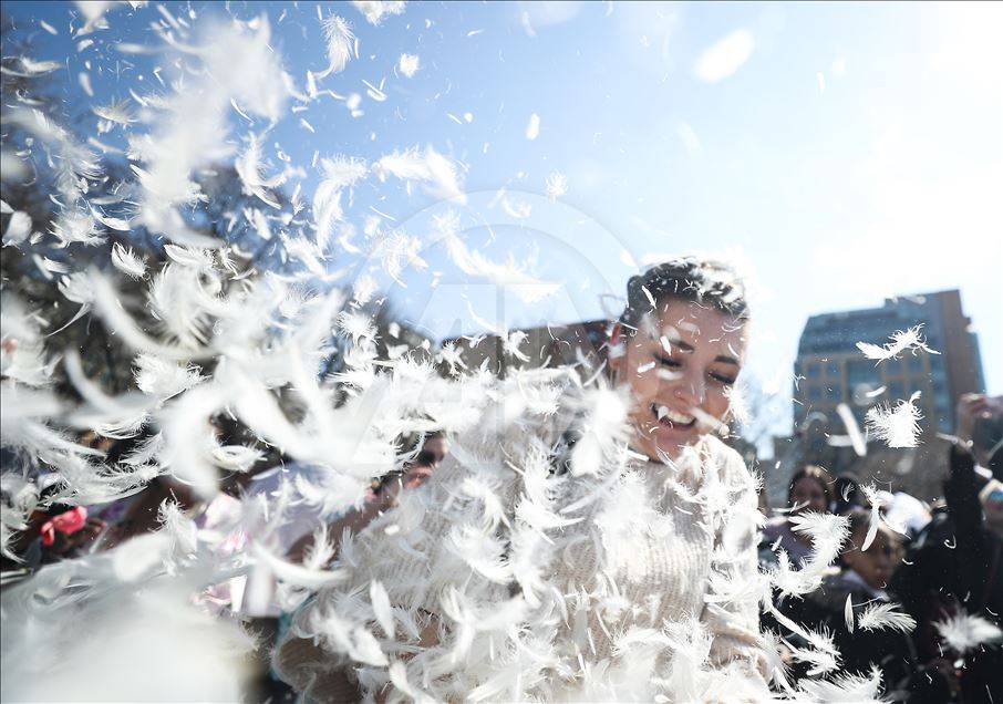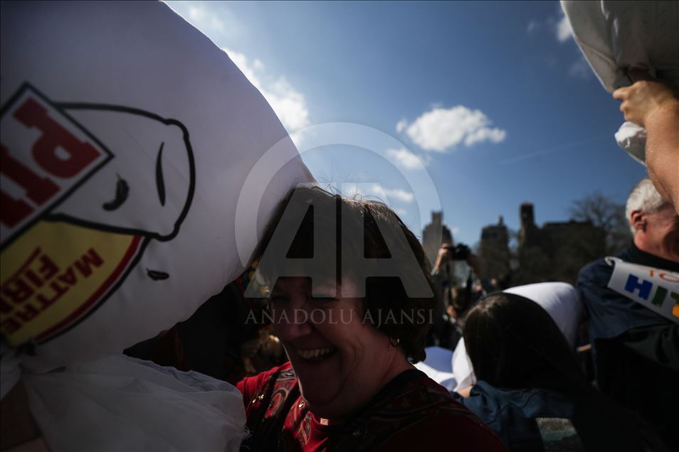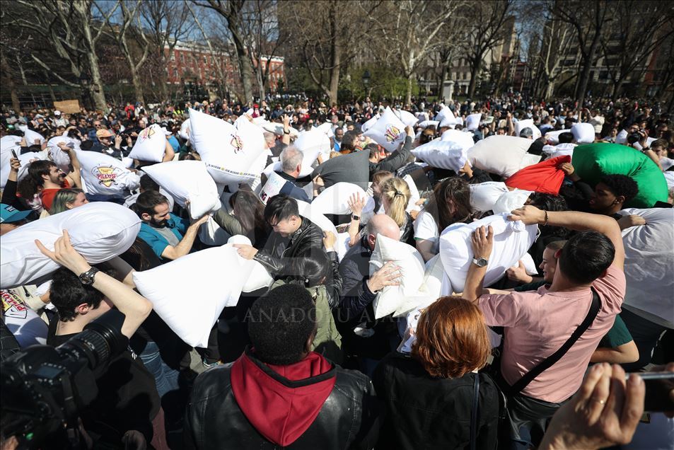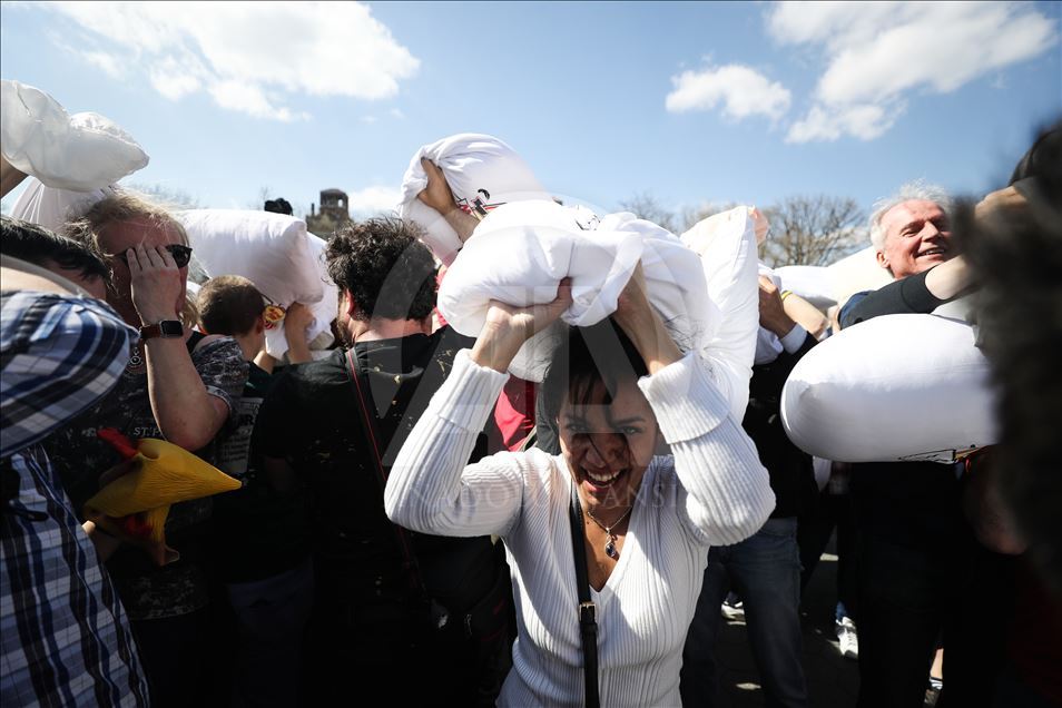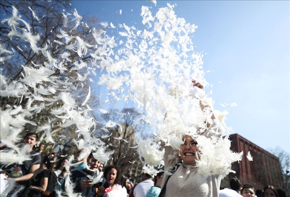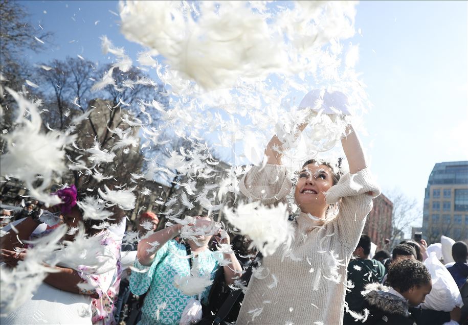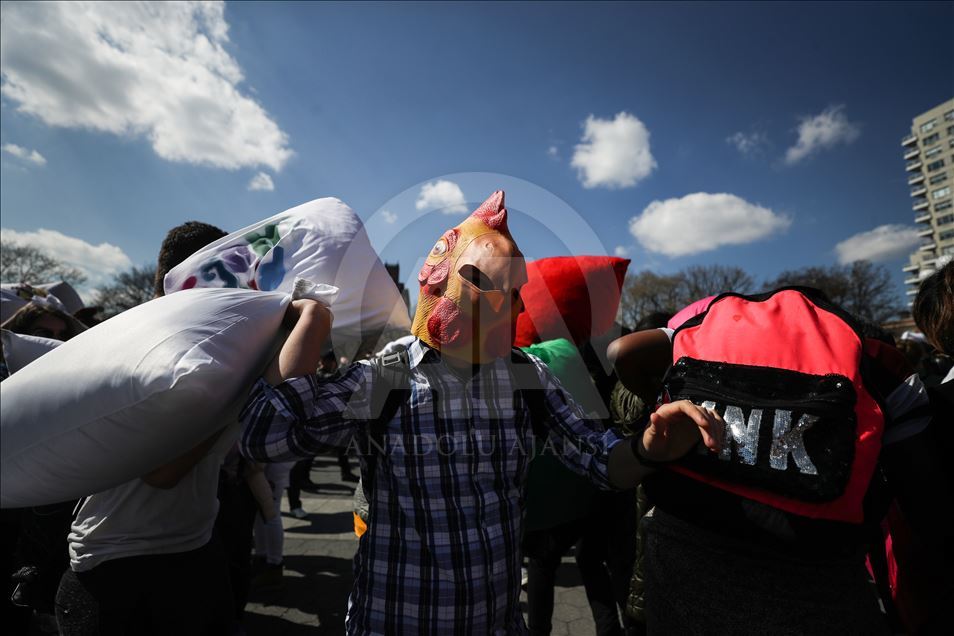 ABD'nin New York kentindeki Washington Square Park'da, her yıl nisan ayında gerçekleştirilen "Uluslararası Yastık Savaşı Günü" kapsamında, bir araya gelenler yastık savaşı yaptı.Yanlarında getirdikleri yastıklarla birbirlerine saldıran gruplar, renkli görüntüler oluşturdu.