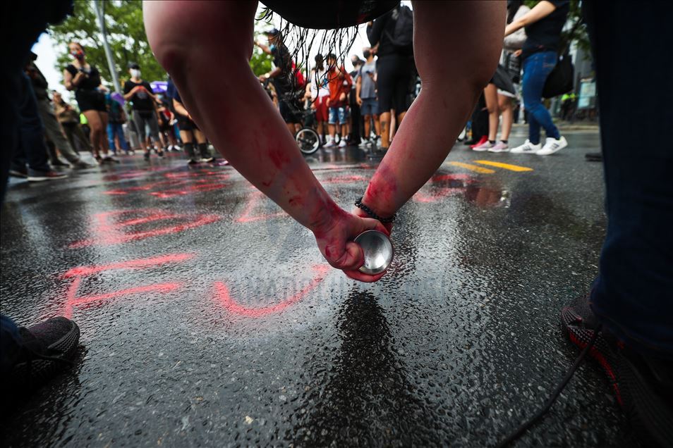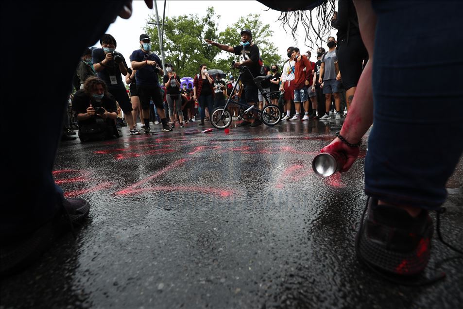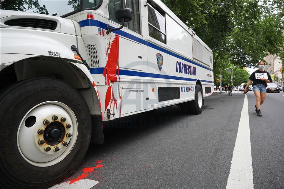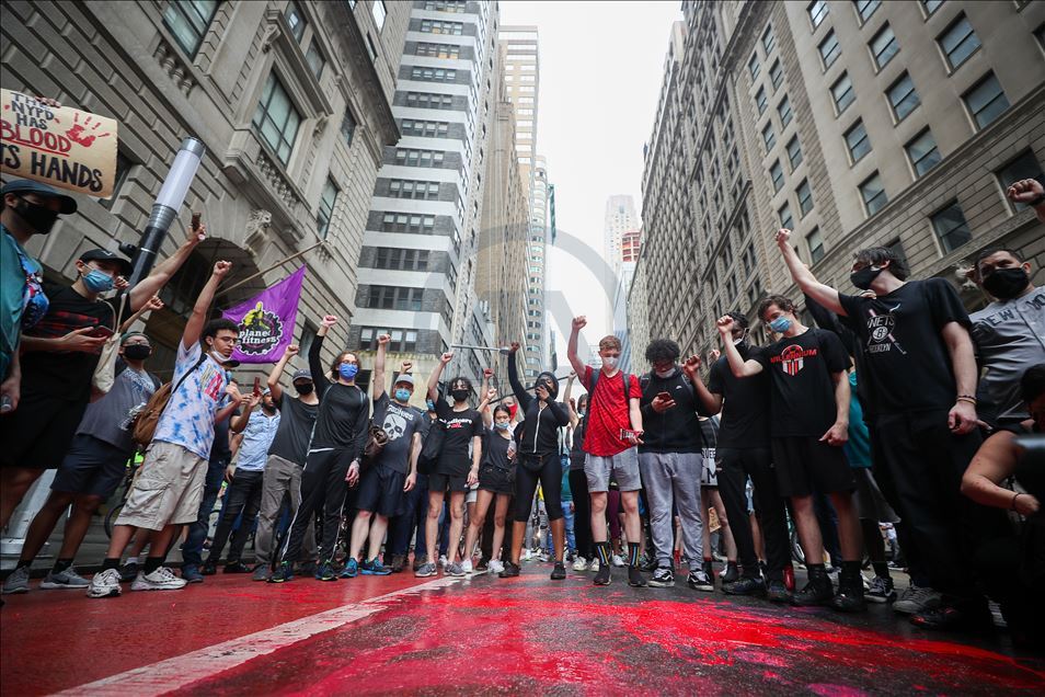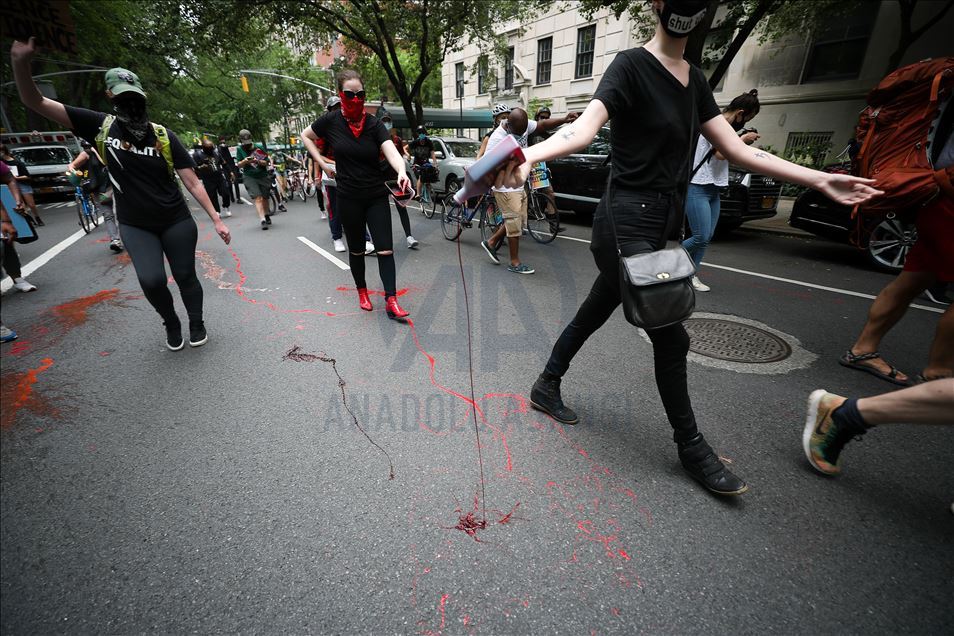 ABD'nin New York şehrinde, Minneapolis'te polis şiddeti sonucu hayatını kaybeden siyahi George Floyd için düzenlenen gösteriler devam ediyor. Göstericiler, Broadway Caddesi üzerine kırmızı boya döktü.