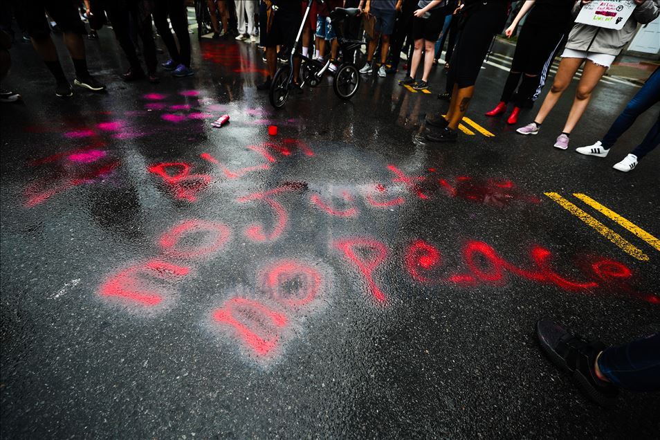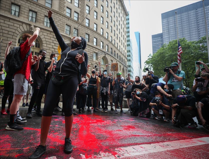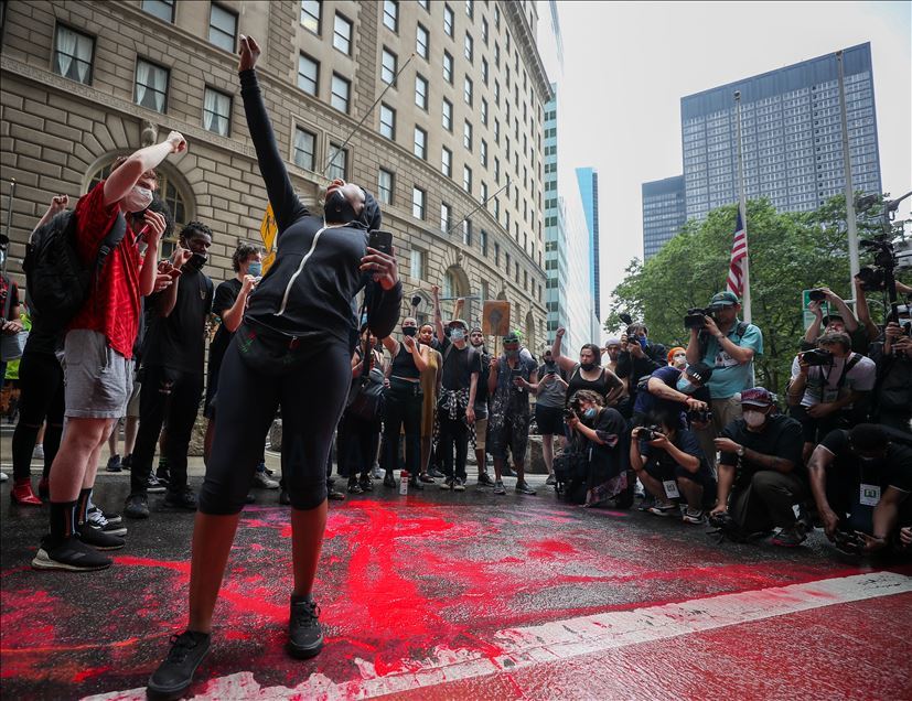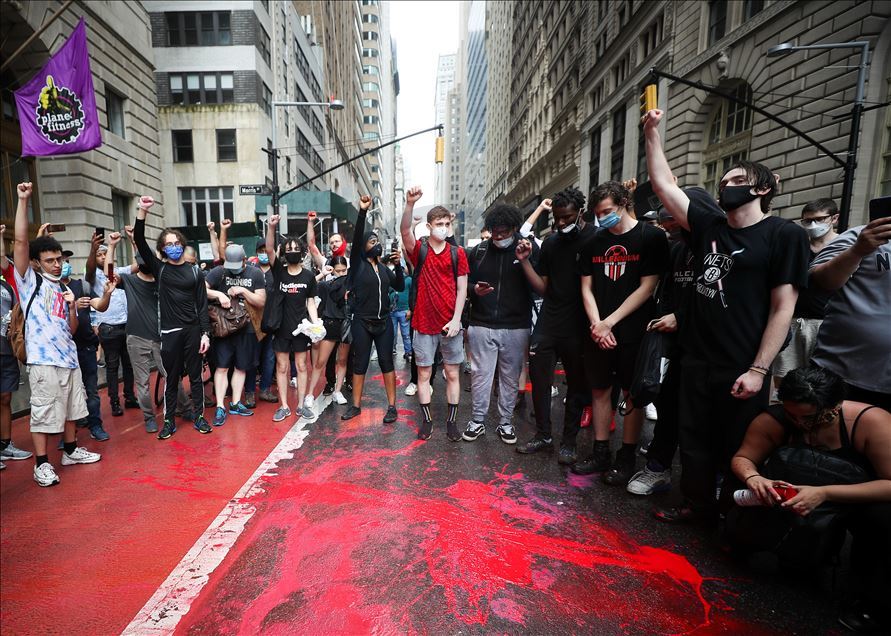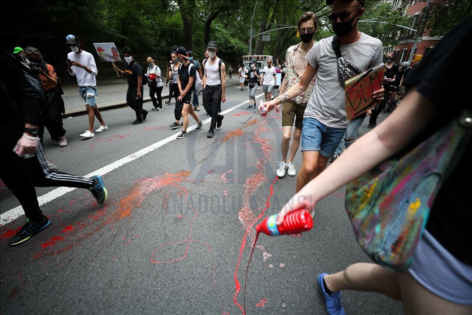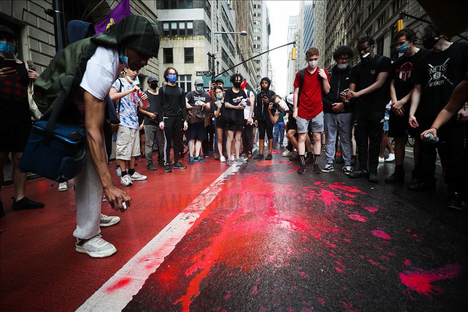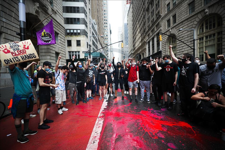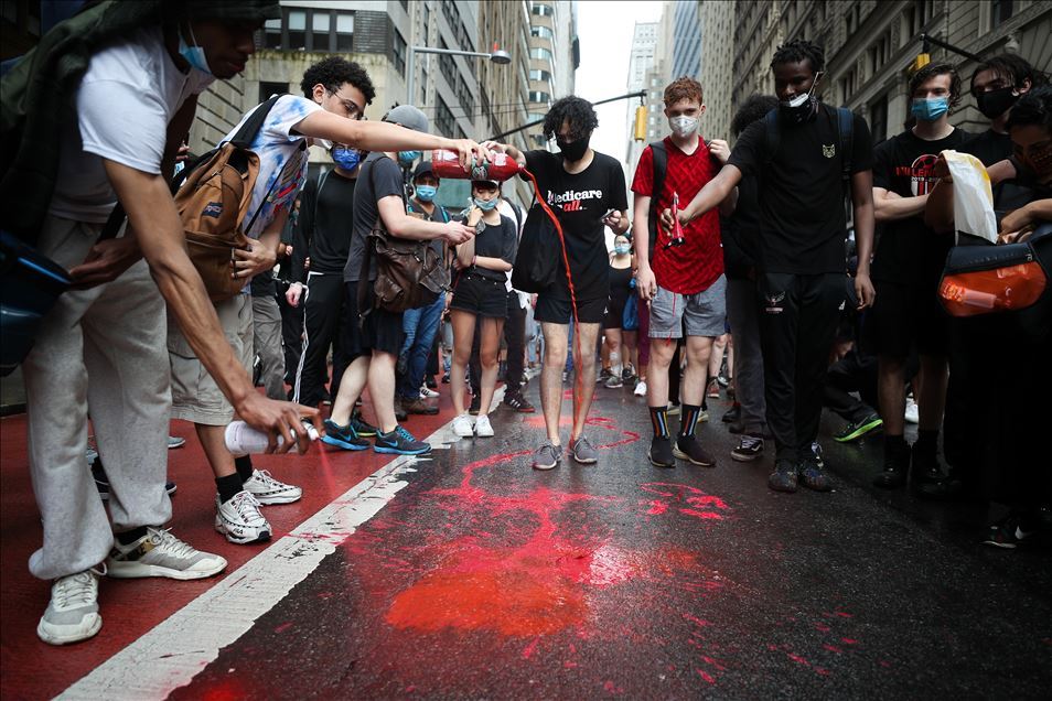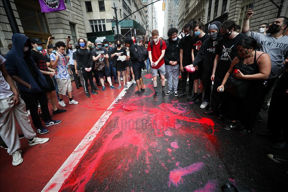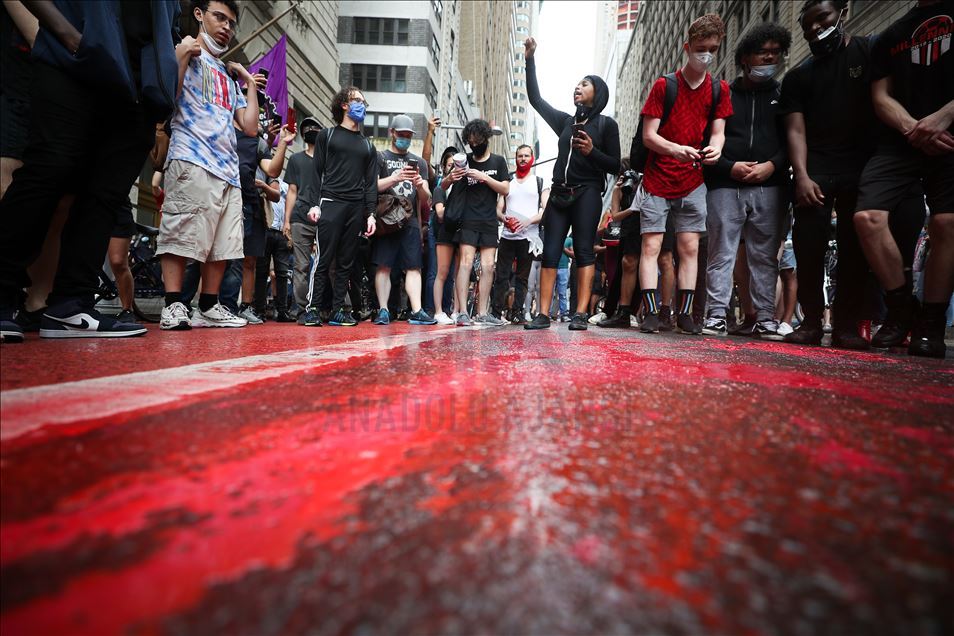 ABD'nin New York şehrinde, Minneapolis'te polis şiddeti sonucu hayatını kaybeden siyahi George Floyd için düzenlenen gösteriler devam ediyor. Göstericiler, Broadway Caddesi üzerine kırmızı boya döktü. Polis çevrede güvenlik önlemi aldı.