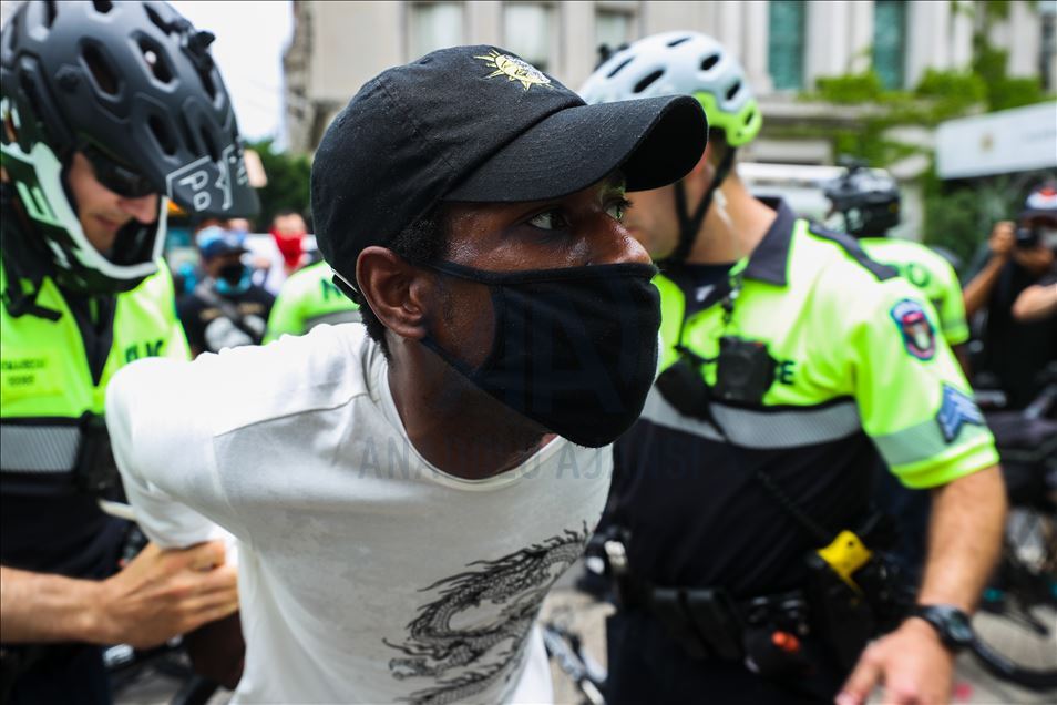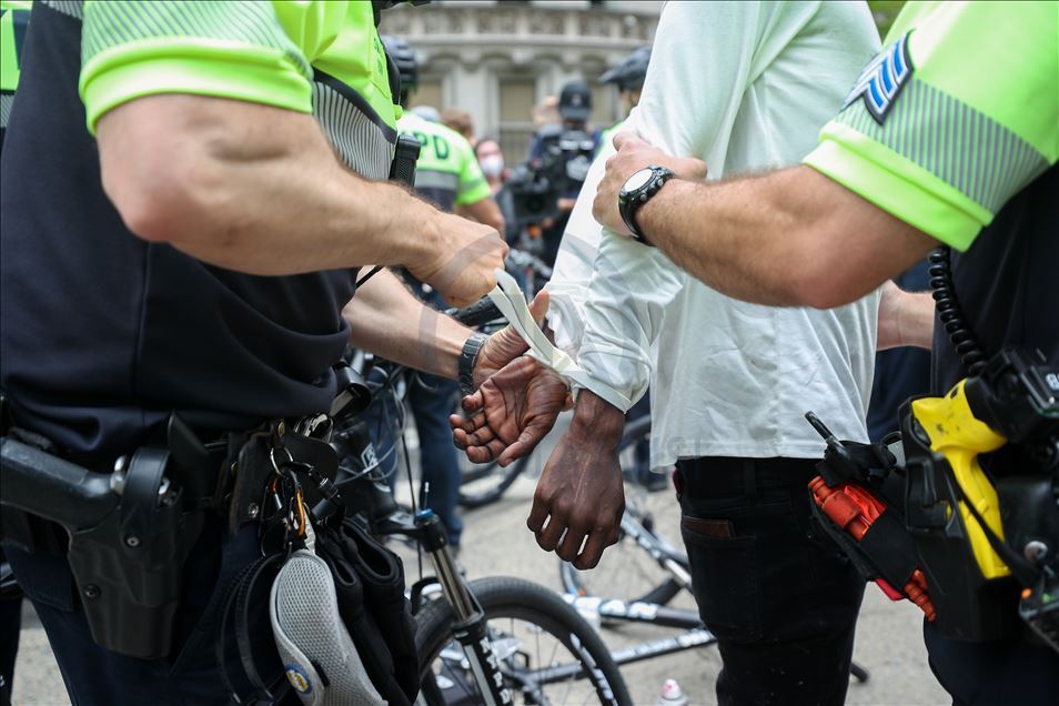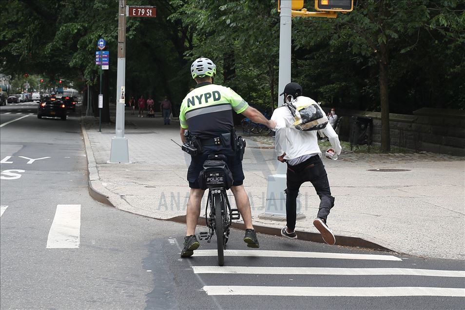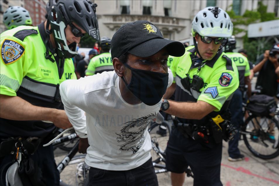 ABD'nin New York şehrinde, Minneapolis'te polis şiddeti sonucu hayatını kaybeden siyahi George Floyd için düzenlenen gösteriler devam ederken, polis bir göstericiyi gözaltına aldı. ( Tayfun Coşkun - Anadolu Ajansı )Tayfun Coşkun