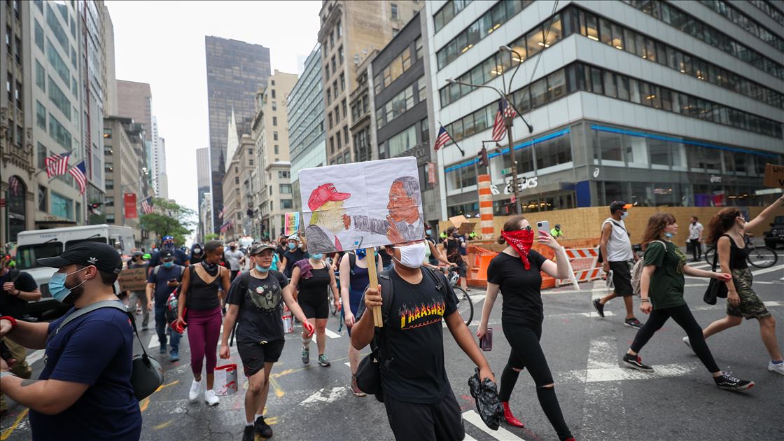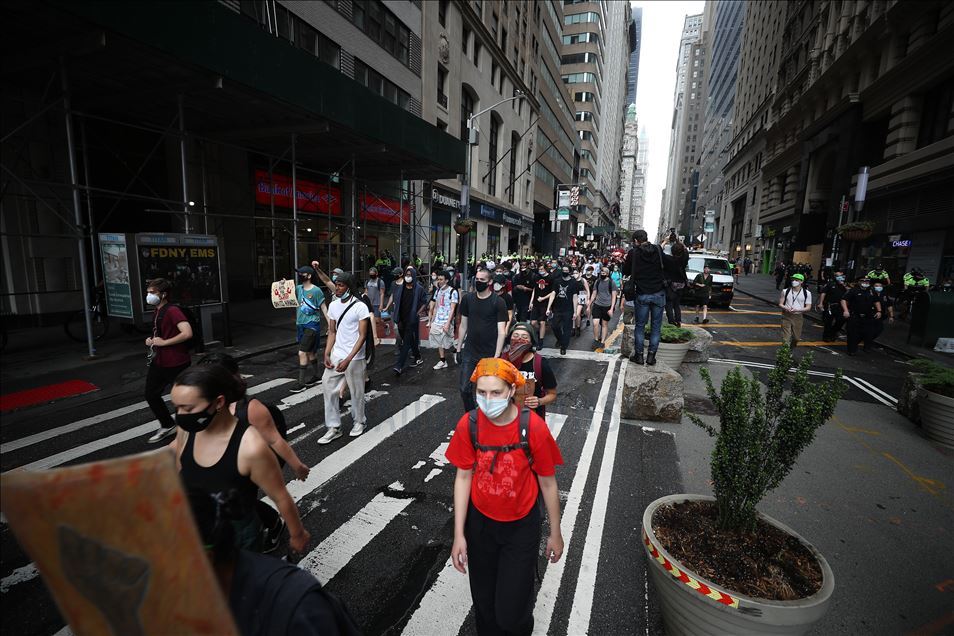 ABD'nin New York şehrinde, Minneapolis'te polis şiddeti sonucu hayatını kaybeden siyahi George Floyd için düzenlenen gösteriler devam ediyor.