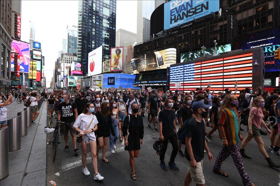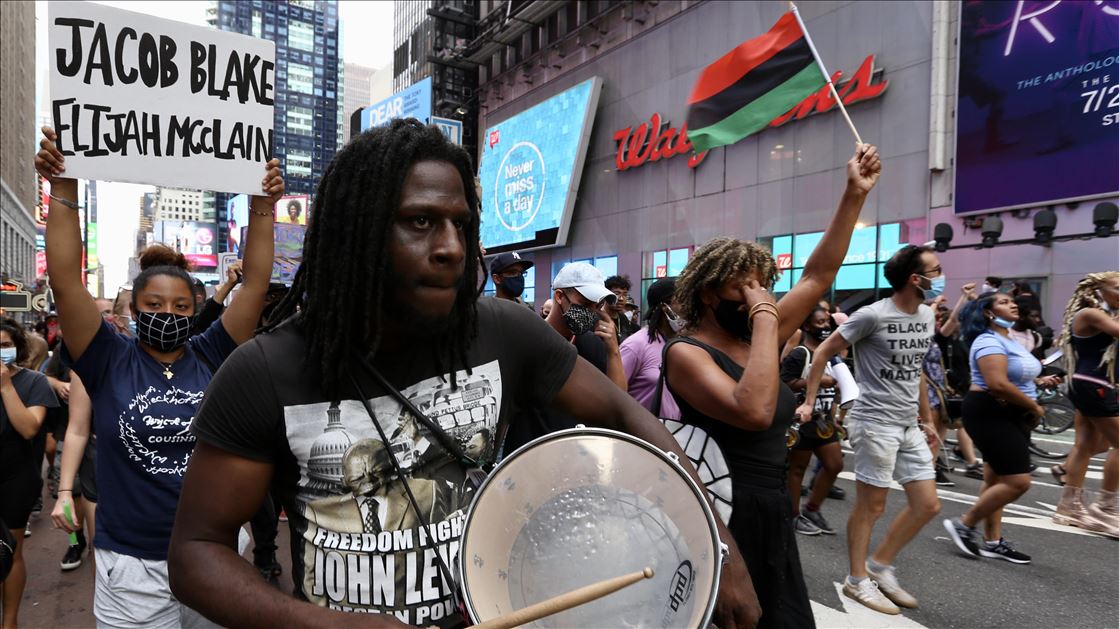 ABD'nin Wisconsin eyaletinin Kenosha kentinde, polisin Jacob Blake isimli bir siyahiyi arkadan vurması sonrası başlayan polis şiddeti karşıtı protestolar, Black Lives Matter (BLM) hareketi üyeleri tarafından New York kentinde de devam etti.