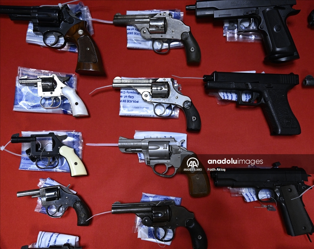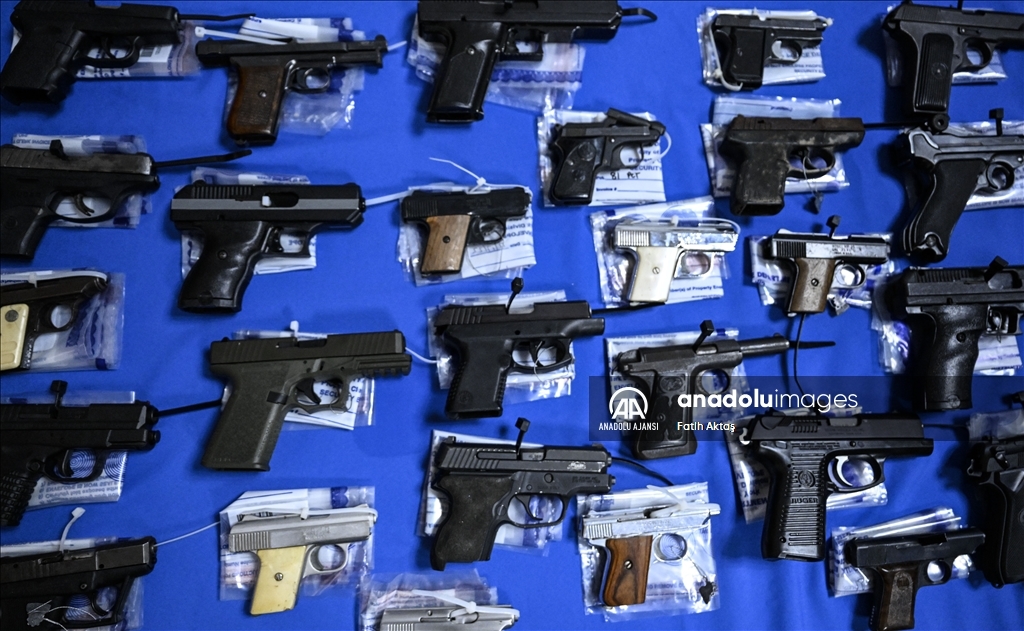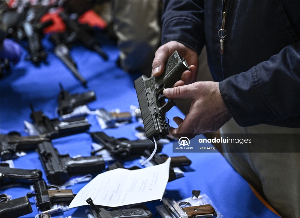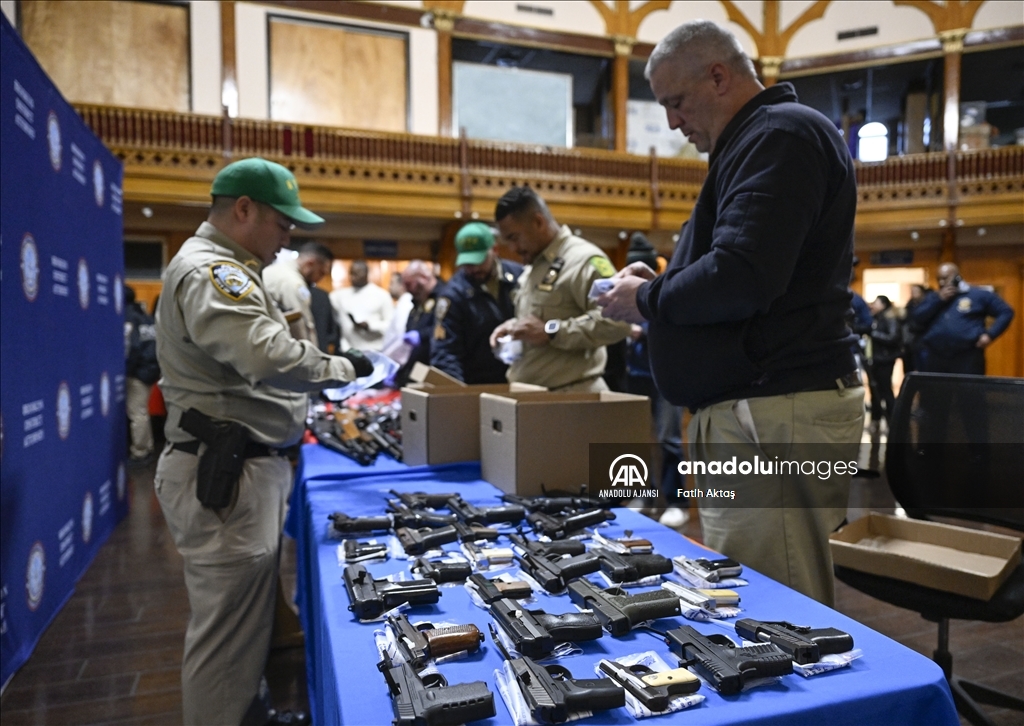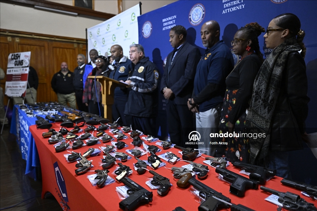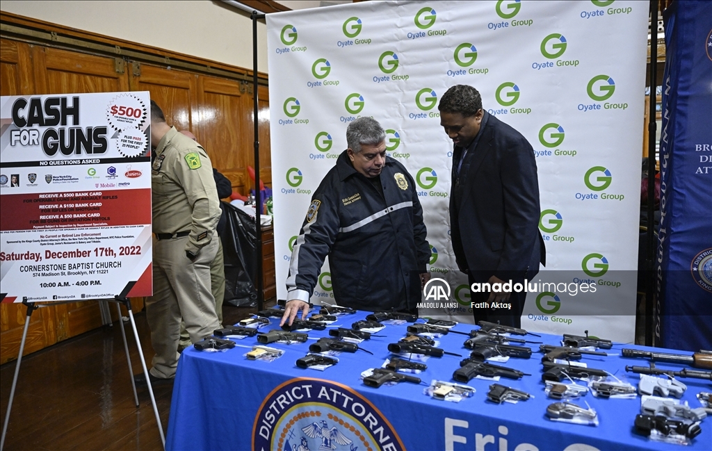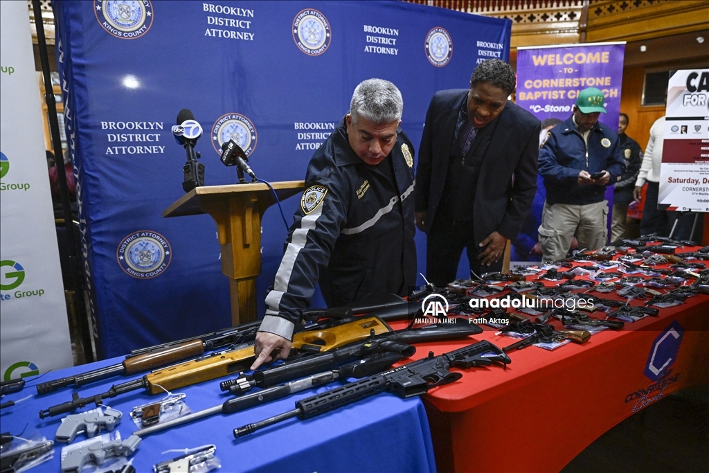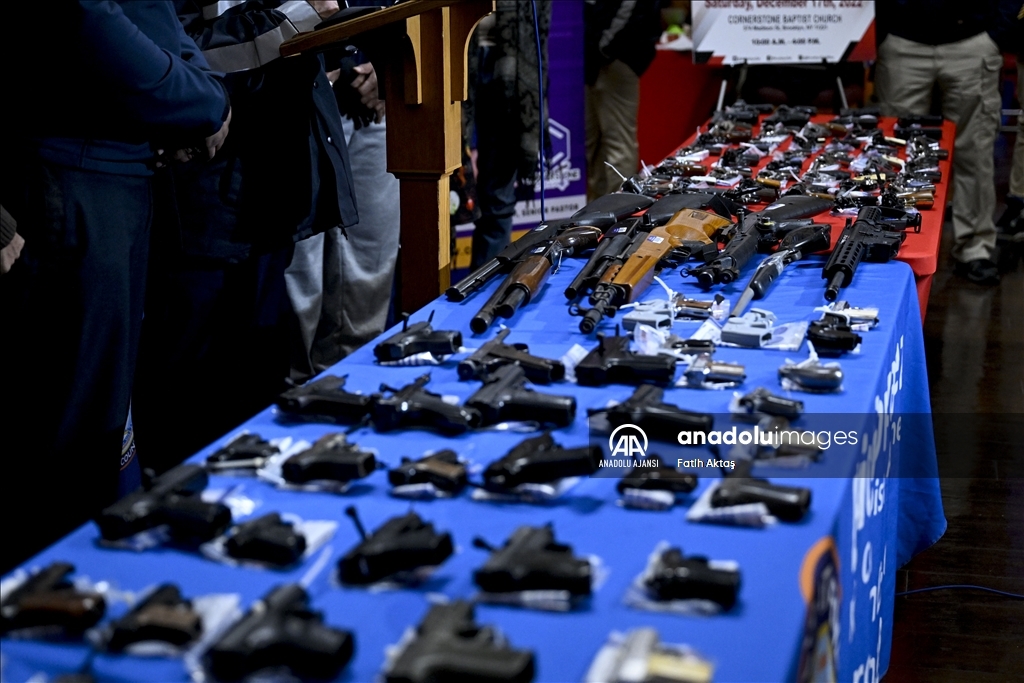 ABD'nin New York şehrindeki Cornerstone Vaftiz Kilisesi'nde Brooklyn Bölge Savcılığının düzenlediği etkinlik boyunca 150 silah vatandaşlardan geri satın alındı. ( Fatih Aktaş - Anadolu Ajansı )Fatih Aktaş