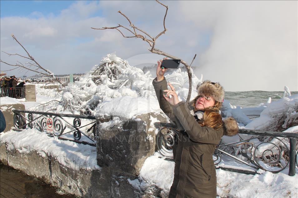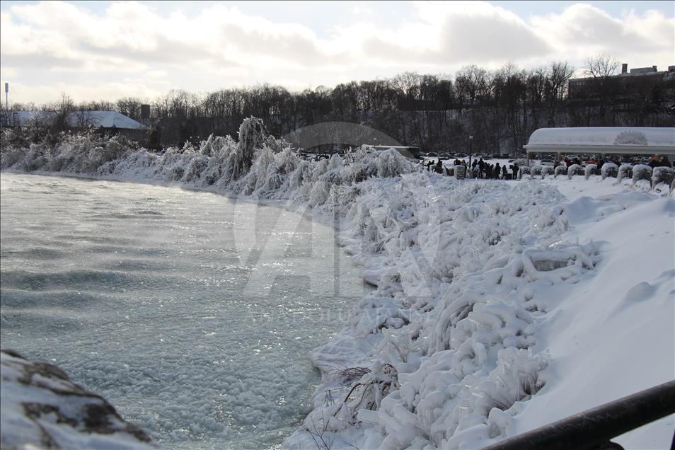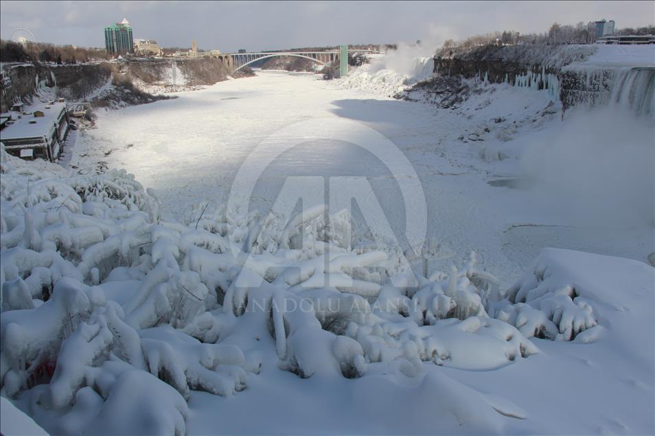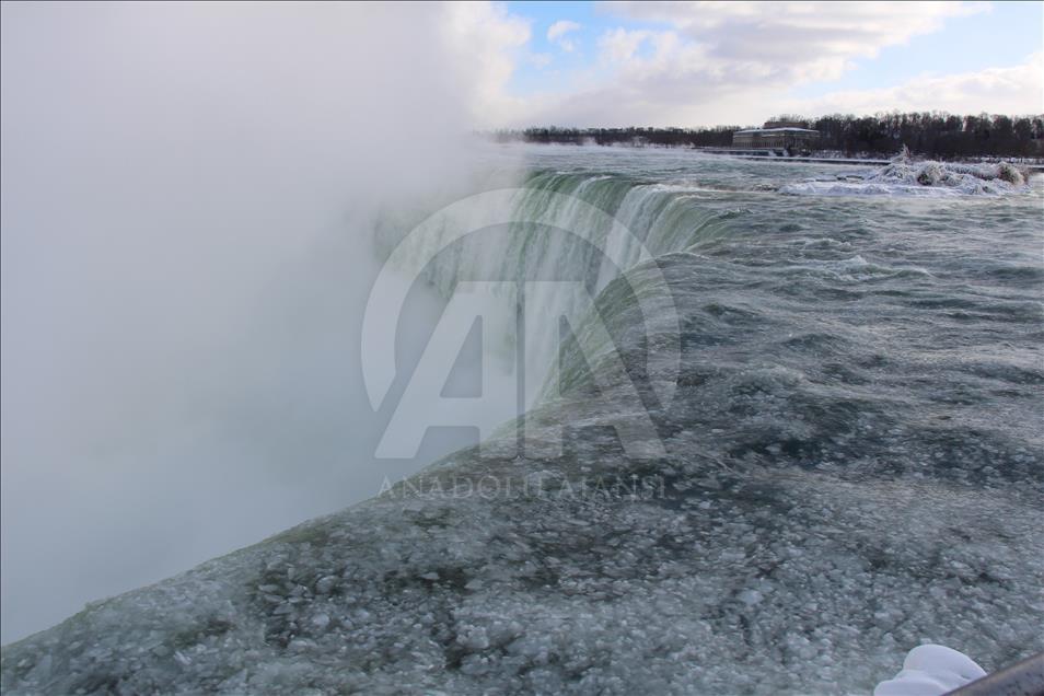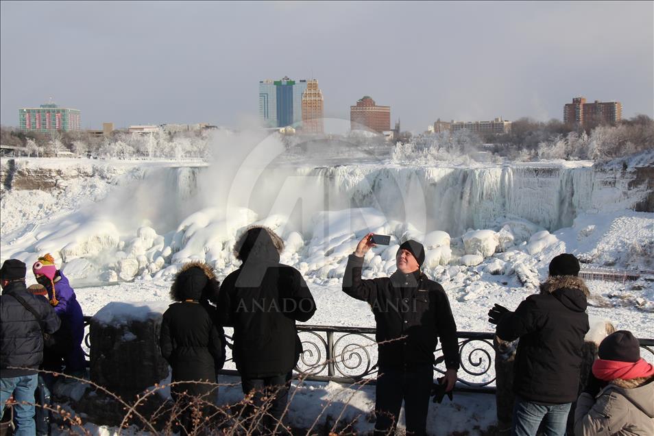 Kanada'da iki haftadır etkili olan soğuk hava nedeniyle Niagara Şelaleleri’nin büyük bir kısmı dondu. Yılın her mevsimi turist akınına uğrayan Niagara Şelaleleri, dondurucu soğuklara rağmen ilgi çekmeye devam ediyor.