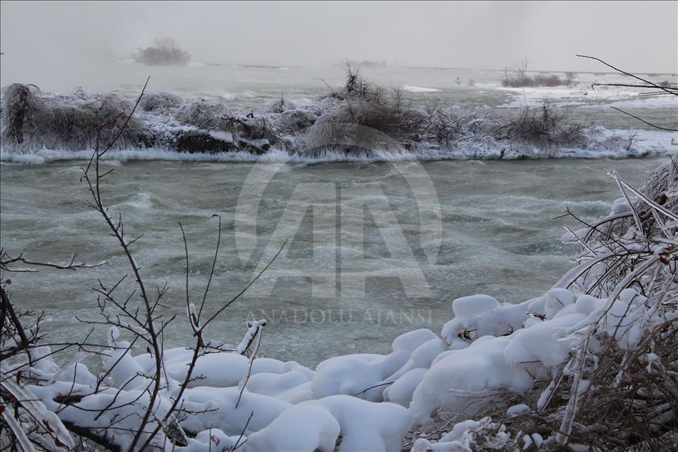 Kanada'da iki haftadır etkili olan soğuk hava nedeniyle Niagara Şelaleleri’nin büyük bir kısmı dondu. Nehirde parçalar halinde buz akıyor. ( Seyit Aydoğan - Anadolu Ajansı )Seyit Aydoğan