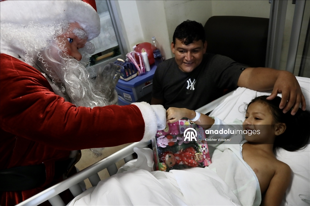 Noel karakterleri, enstitünün üst katlarından inerek pediatrik cerrahi, yenidoğan cerrahisi ve yanık üniteleri gibi farklı servisleri ziyaret etti ve hastanede tedavi gören yaklaşık 150 çocuğa hediye dağıttı.Klebher Vasquez