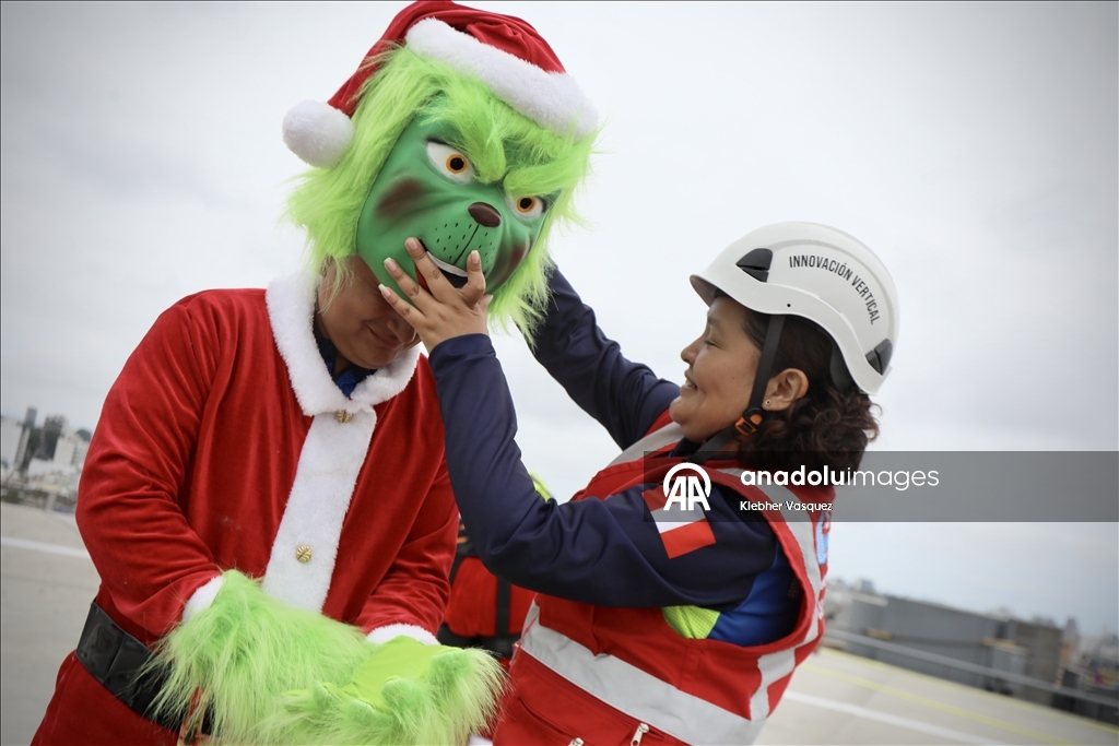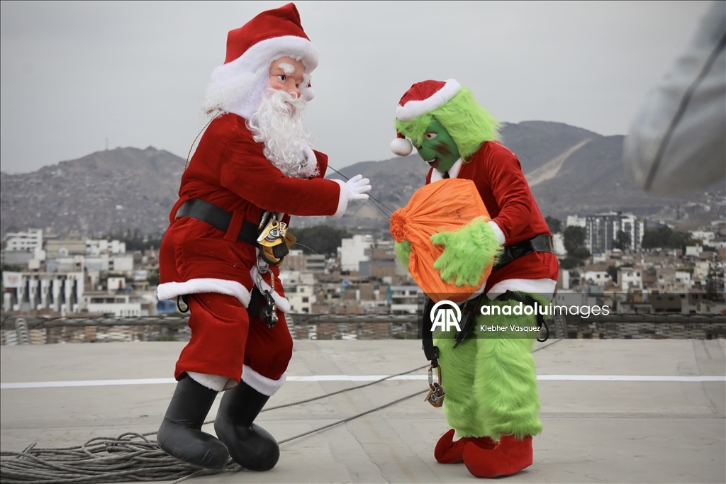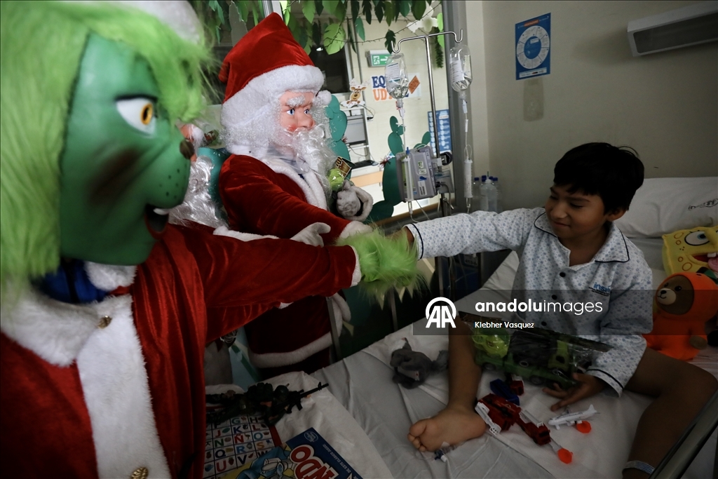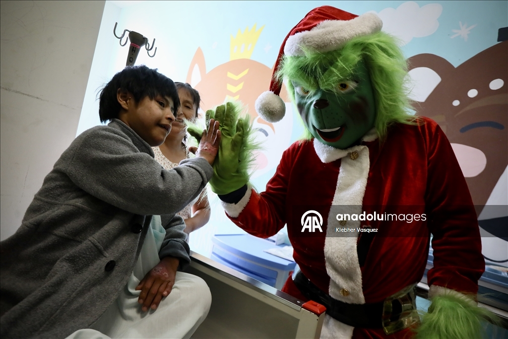 Noel Baba ve Grinch kostümü giyen karakterler, Peru’nun başkenti Lima'daki San Borja Ulusal Çocuk Sağlığı Enstitüsü’nde çocuklarla bir araya geldi.